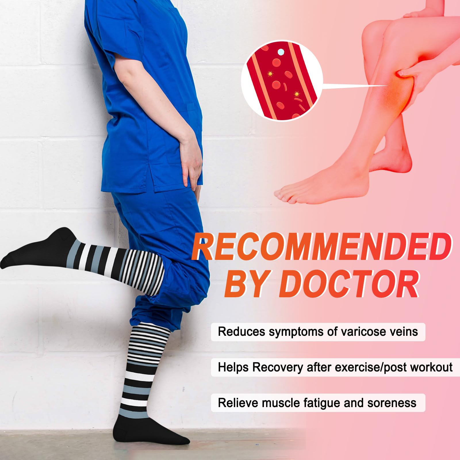 Perfect for Every Occasion – From running, sports, and pregnancy to work and travel, these compression socks are versatile enough to meet your needs. They help to reduce swelling, improve circulation, and support blood flow. Whether you're on a flight, in the gym, or working a long shift, you'll experience the difference in comfort and performance with these socks.