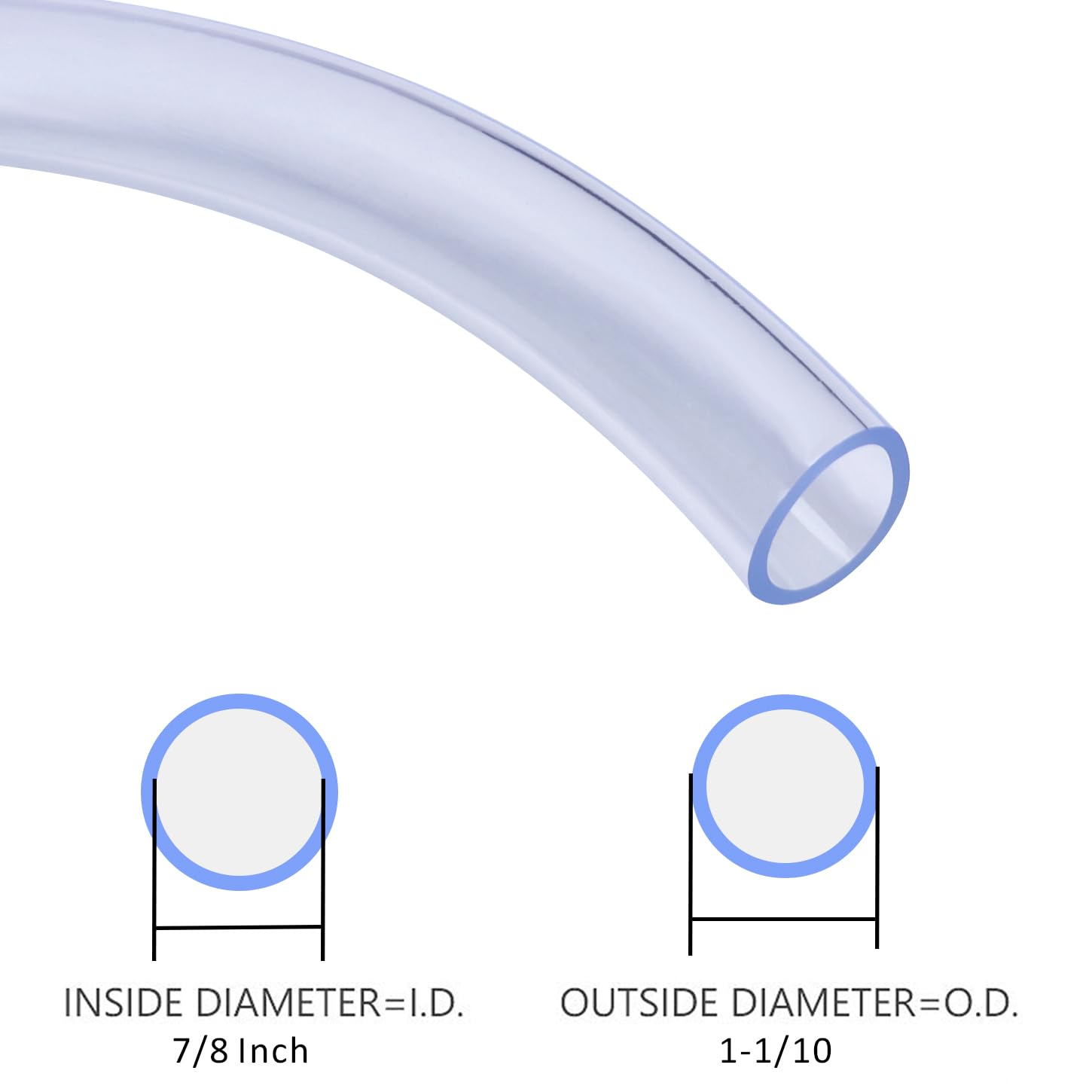 Size - Plastic PVC tubing, 7/8 inch ID X 1-1/10 inch OD Length: 10 Feet