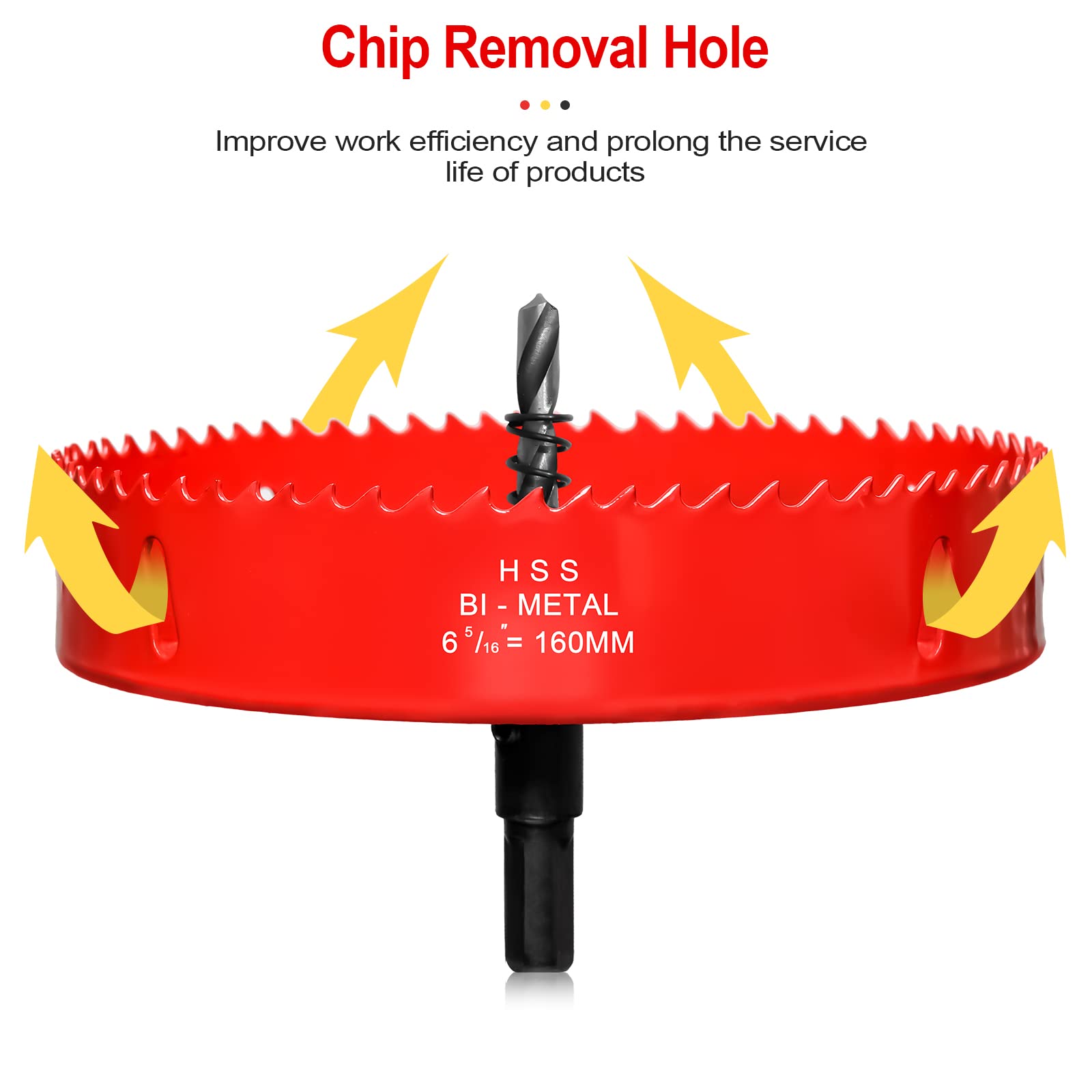 【MORE EFFICIENCY】The slug holes at the edge of the hole saws are designed for removing the wood chips while cutting, reduce friction heat, improve the efficiency. And due to the fact that less of total amount of material is actually cut, much less power is required, longer battery life of power tools is benefited.