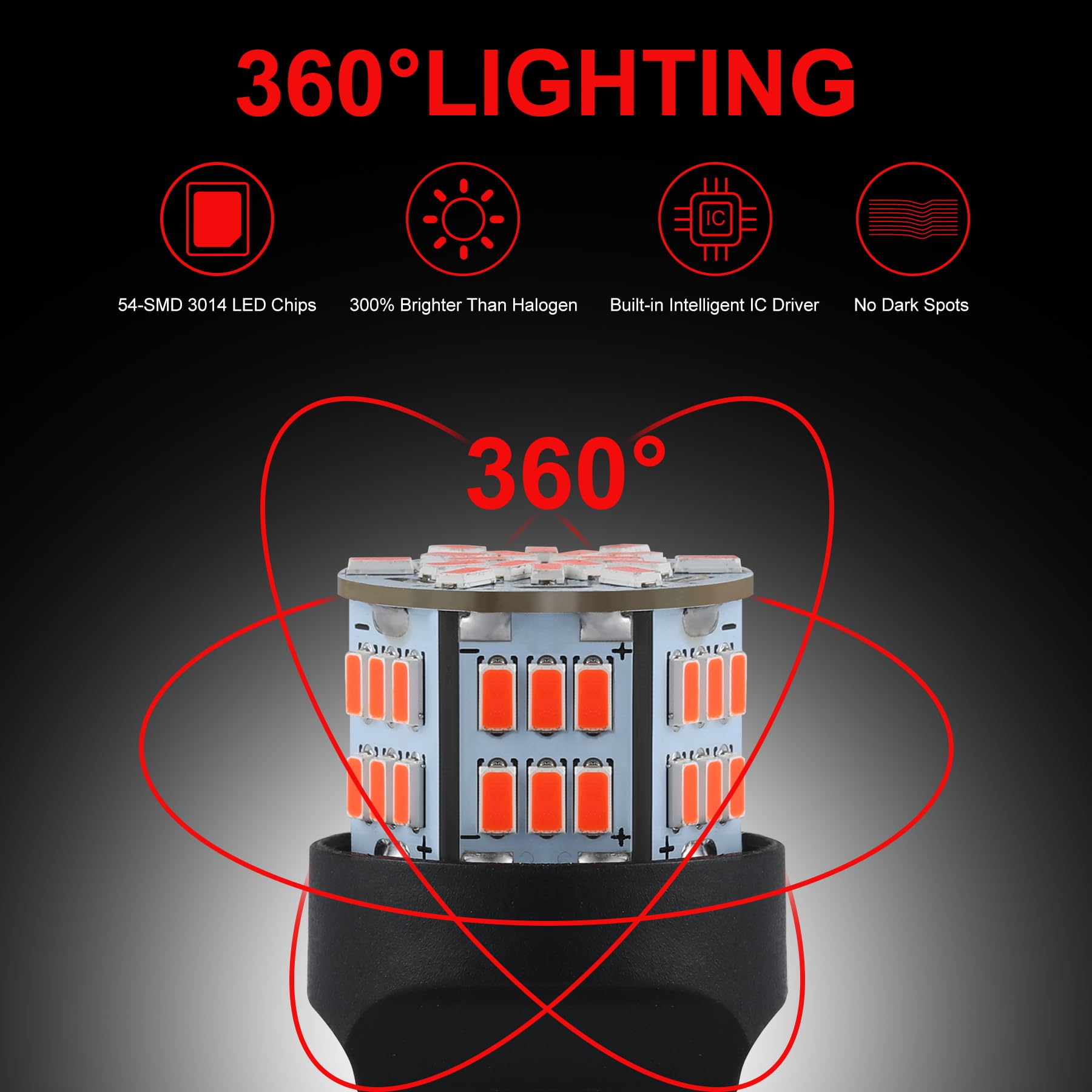 300% Brighter: Our 7443 bulb has 54 pieces of 3014 led chips on it, 360 degree lighting angle, no blind spot.