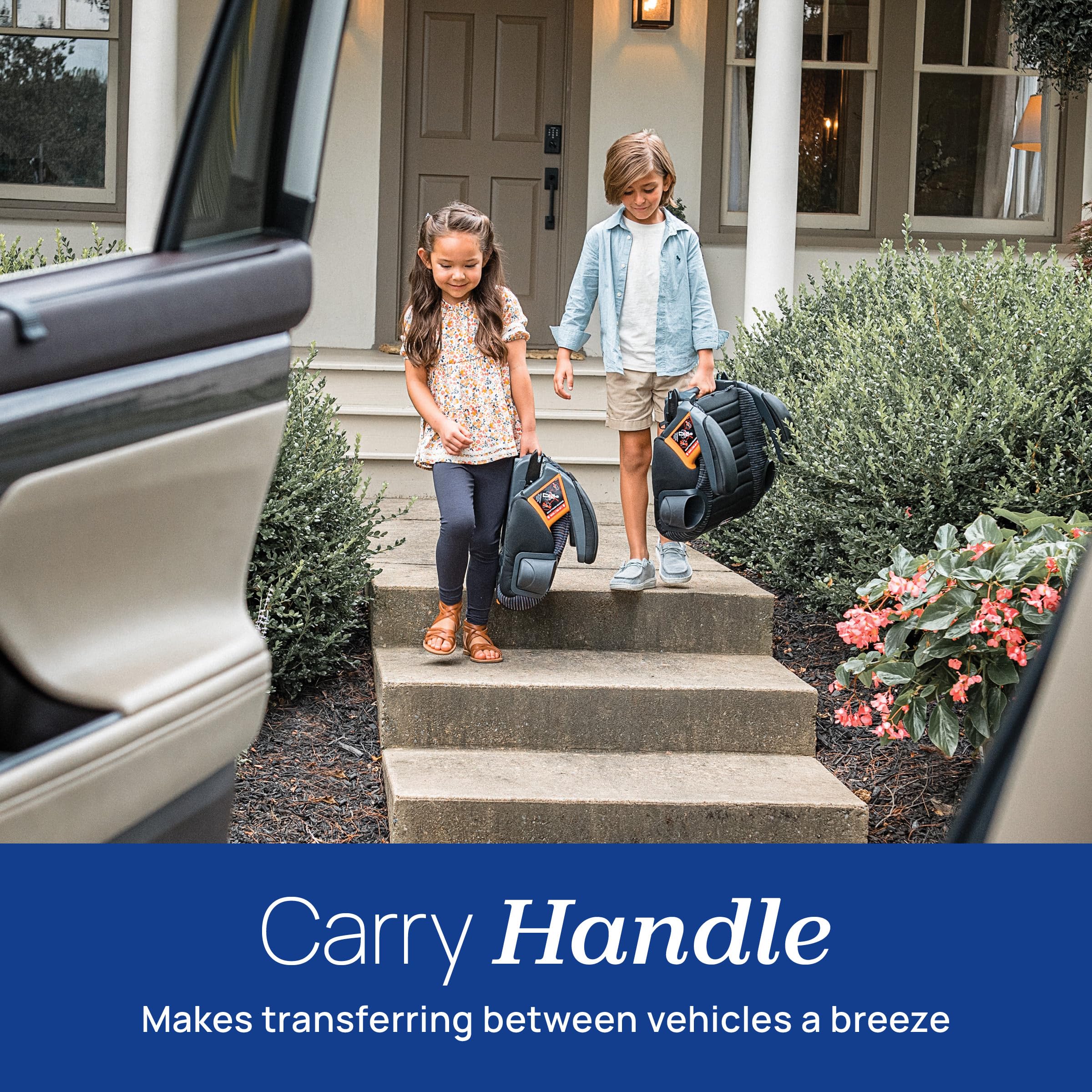 GRAB & GO CONVENIENCE – The GoFit ClearTex Plus backless booster is equipped with LATCH to help stabilize the seat while the child gets in and out. An innovative quick-release design means one-hand removal with a simple pull of the release handle. Built-in carry handle.
