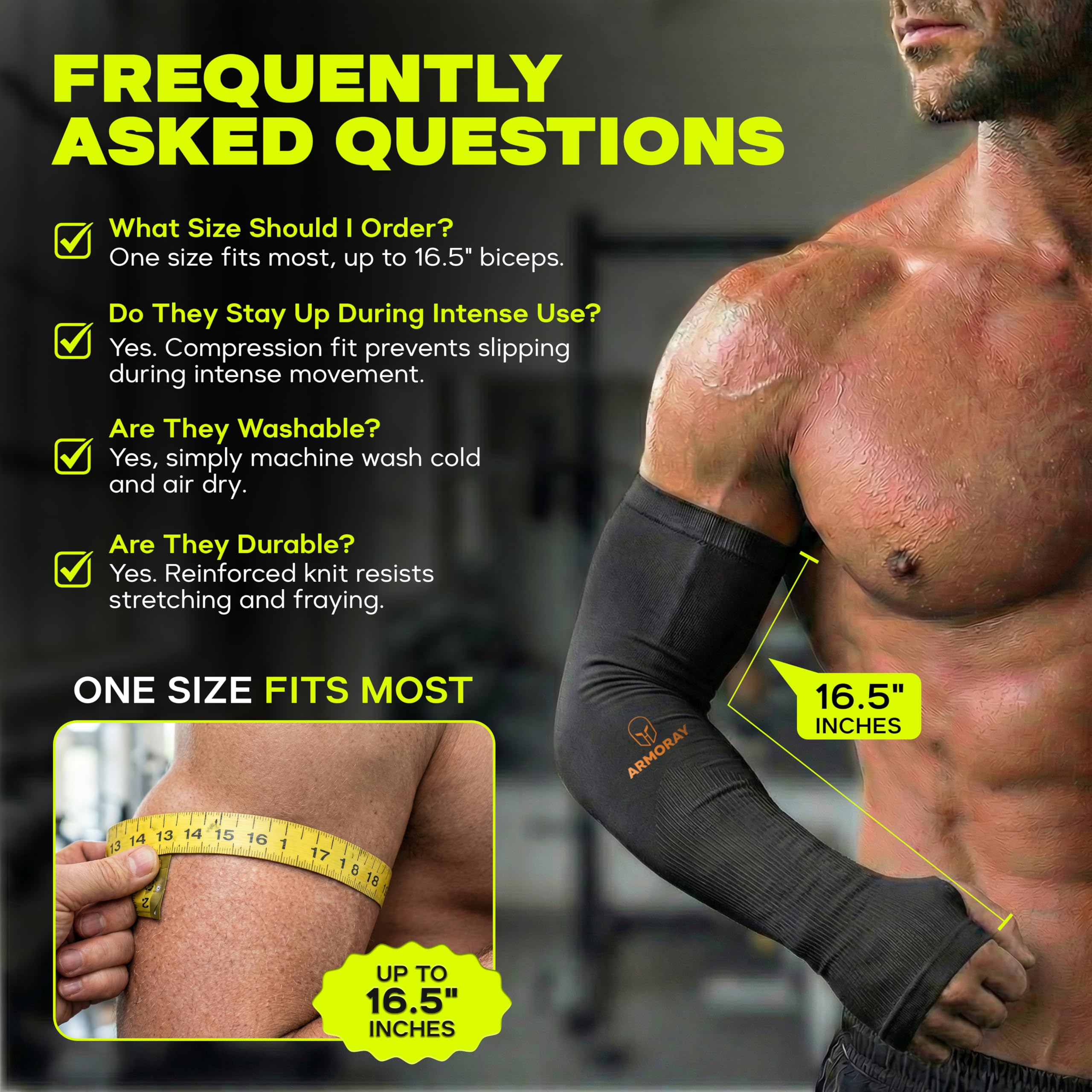 SUPERIOR Compression Fit: These arm compression sleeves provide a supportive, snug feel without restricting movement. Stretch fabric adapts to different arm sizes while maintaining shape during workouts or long hours outdoors.