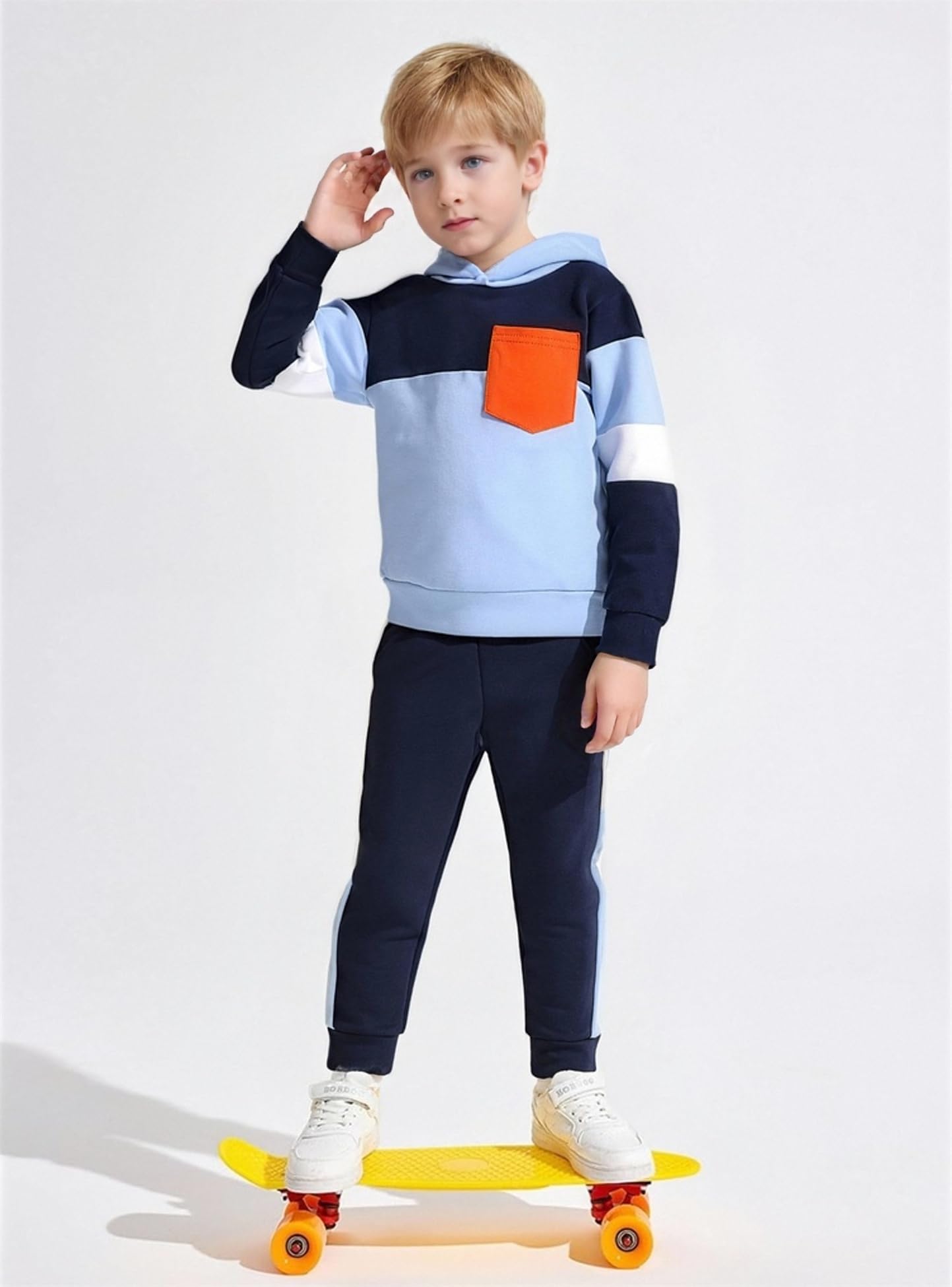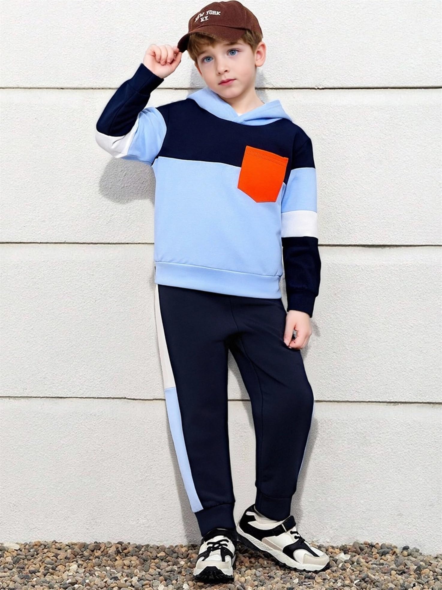 Design: Featuring a trendy color - block hoodie with matching pants, this set combines fashion and functionality. The easy - clean fabric simplifies parenting, while the eye - catching design makes kids look stylish and feel confident. Perfect for little adventurers!