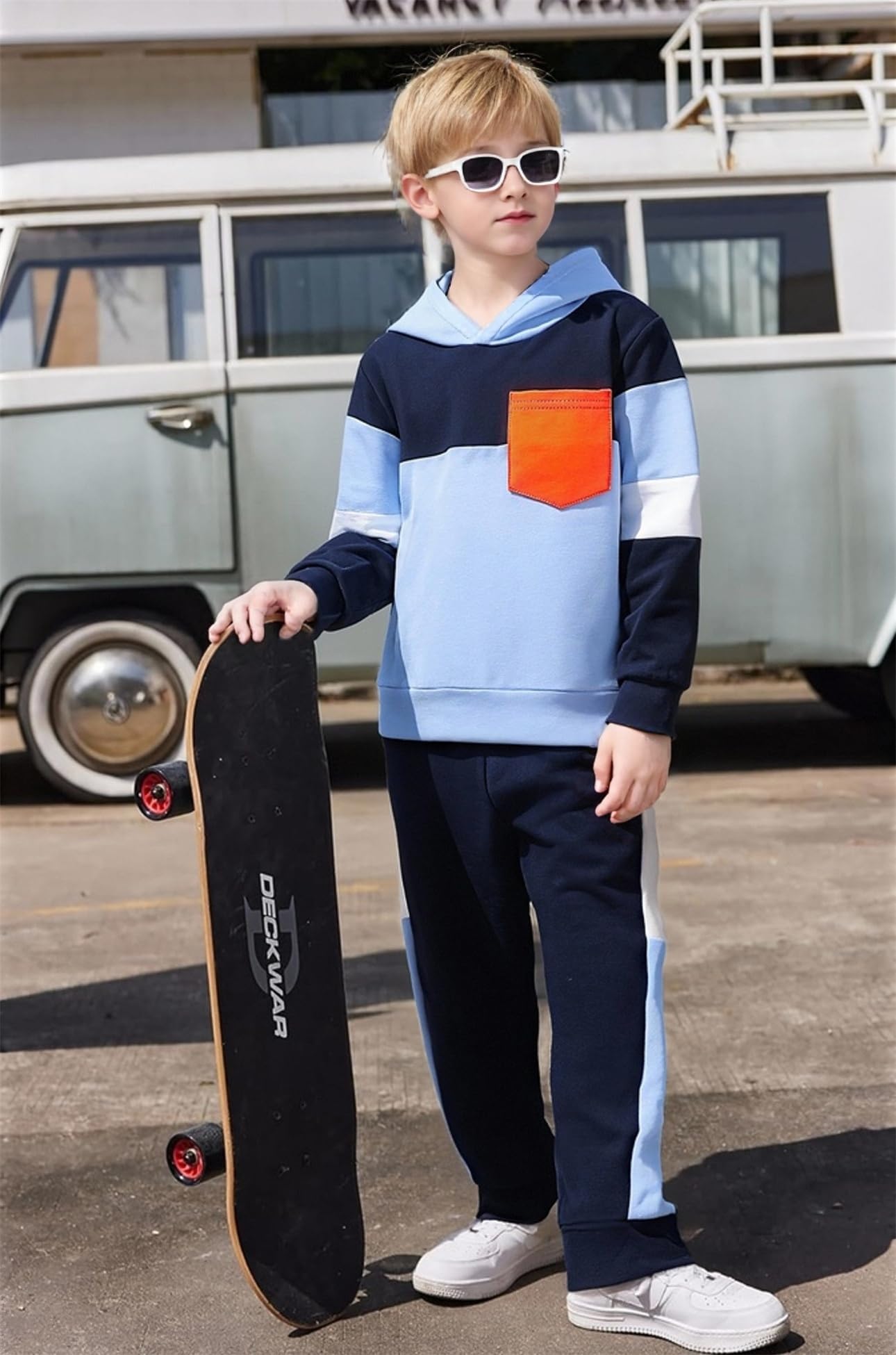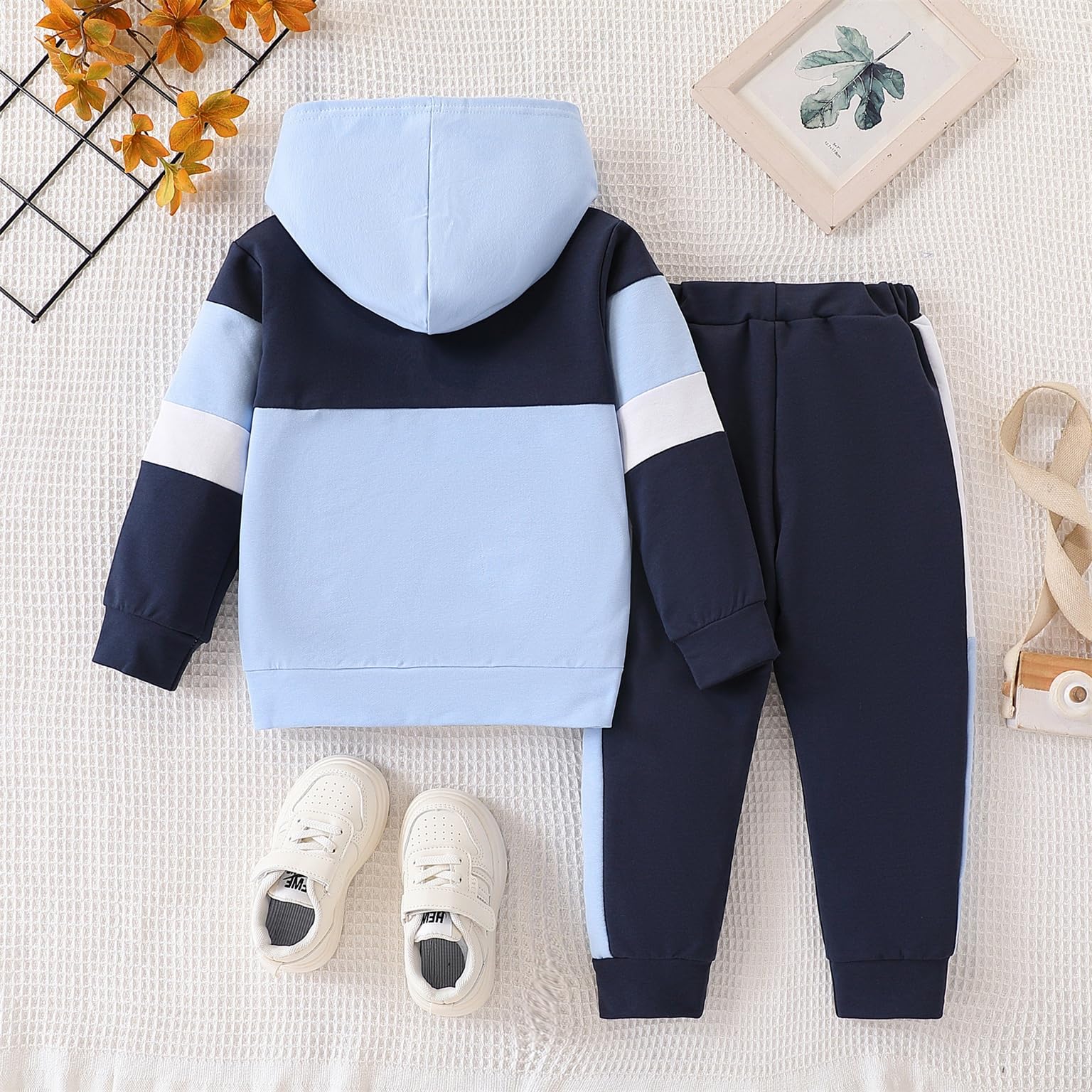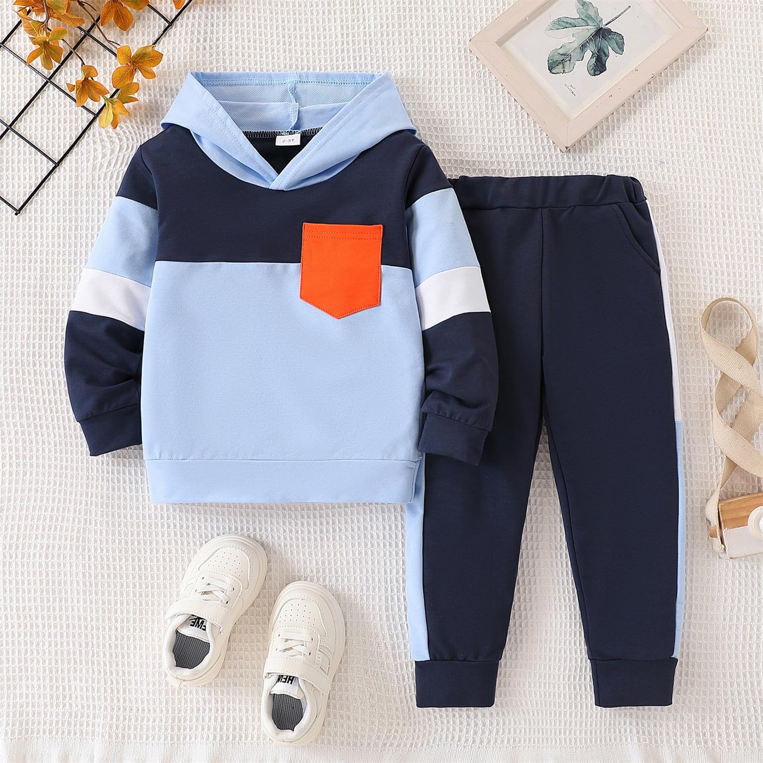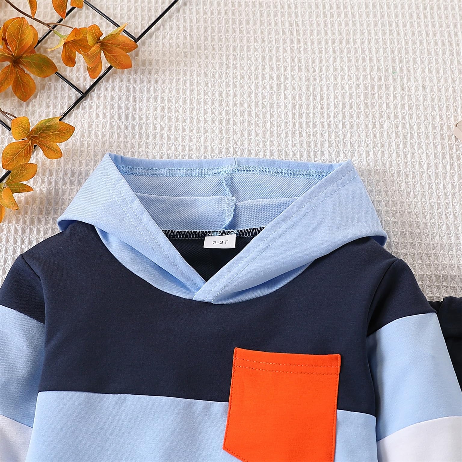 Description Kid Boys Clothes Long Sleeve Color Blocked Hoodie Top Pants 2PCS Sweatsuit Fall Boys Outfits