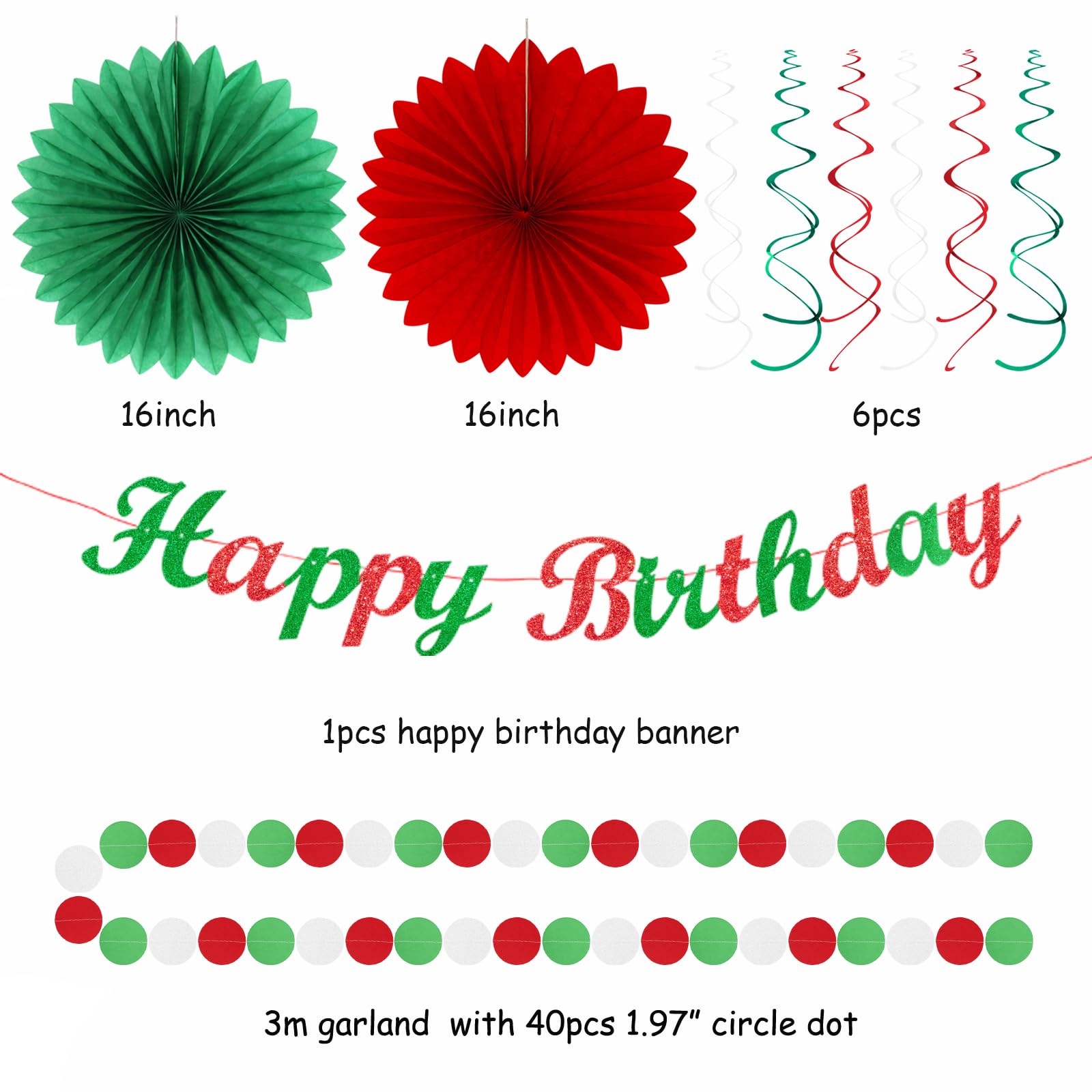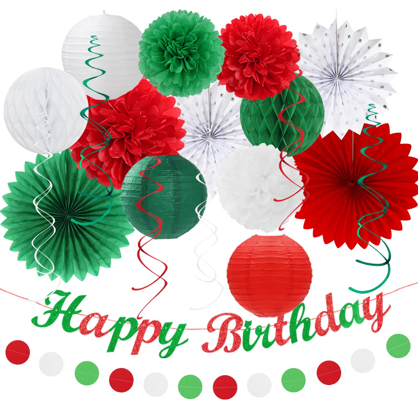 【Mexican Italian Christmas Party Kits】This kits include 1pcs happy birthday banner, 1pcs circle dots paper banner, 4pcs tissue pom poms: 3pcs 10" and 1pcs 12", 3pcs 8inch paper honeycom ball, 2pcs 8inch paper lantern, 4pcs 12inch paper flower fan, 6pcs paper swirls hanging streamers. 【Unique Birthday Party Decoration design】red white green color, use our high-quality birthday decorations at your party table and give your guests the details they deserve. It will be a great addition to your birthday theme party. 【Wide Application】This birthday party decorations kit have been used for all kinds of parties and special occasions Perfect for 5th 7th 8th 10th 12th 13th 17th 18th 20th 21st 22nd 26th 28th 30th 50th 60th 80th birthday decorations,Party decorations for women and girls,adult and kids,classroom birthday decoration,Mexican Italian Christmas party decorations. 【Easy to Assemble】The paper fan and paper lanterns are easy assemble, the birthday banners can be diy, the circle dots paper banner has been assembled but tissue paper pompoms take more time to put together, please diy with the instructions. It will take about 20 minutes in total. 【Quality Guarantee】If you are not satisfied with the color, quality or other aspects,please contact us for a refund or replacement. We have a 30 day refund guarantee for every order.