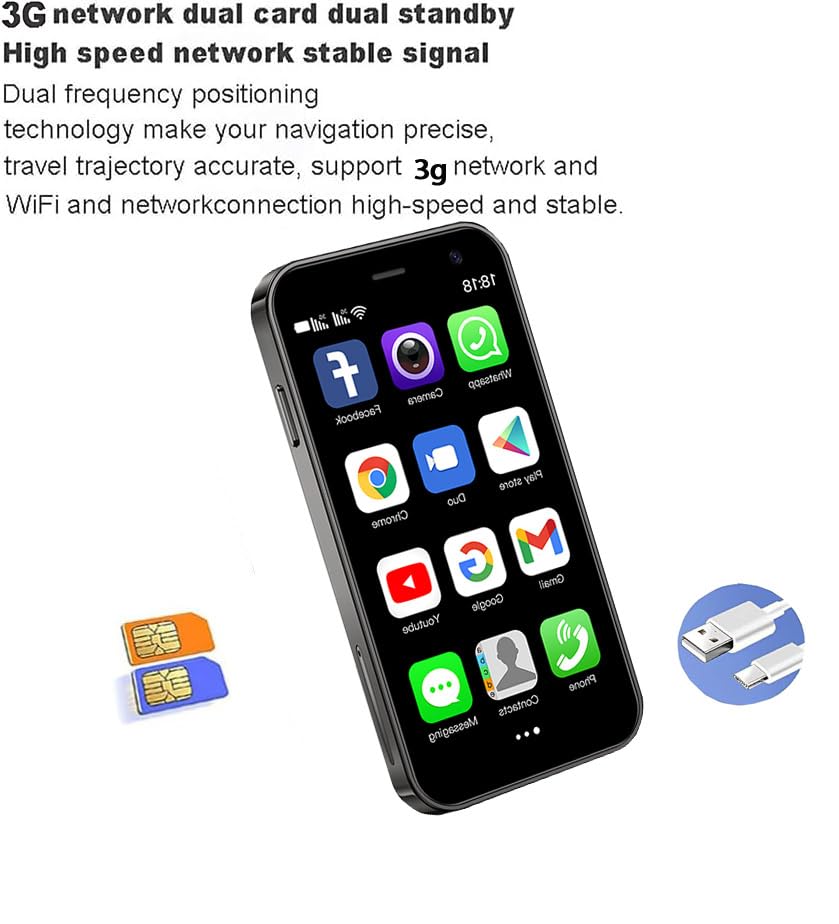Super Mini Smartphone :Dual Card Dual Standby,3.0 inch IPS full screen phone with narrow bezel design, With high-definition resolution, eye friendly, clear image quality, and bright colors, it can provide you with the best visual experience whether it's watching TV dramas or playing games.