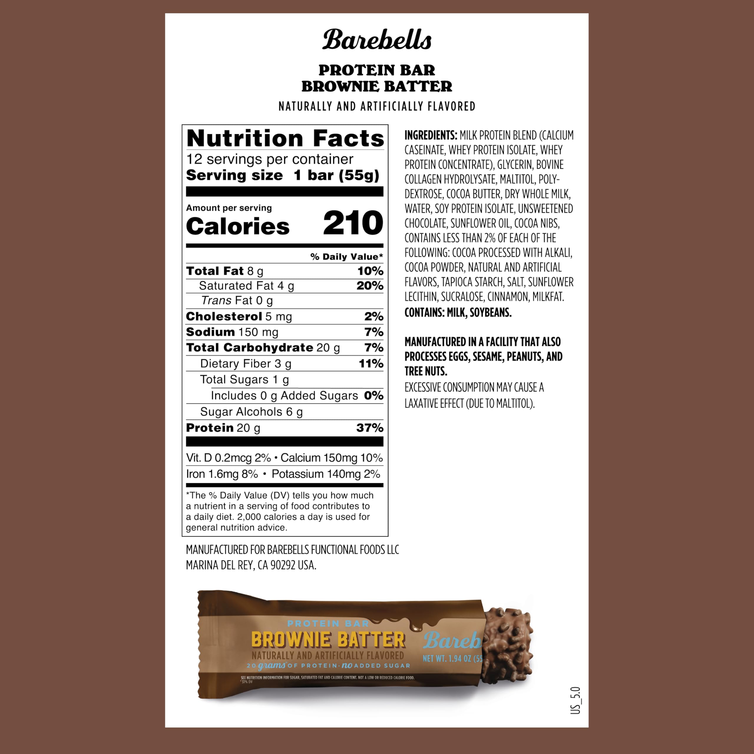BAREBELLS BROWNIE BATTER PROTEIN BAR – A soft and indulgent protein bar inspired by brownie batter, delivering a rich chocolate flavor with a smooth, dessert-like texture