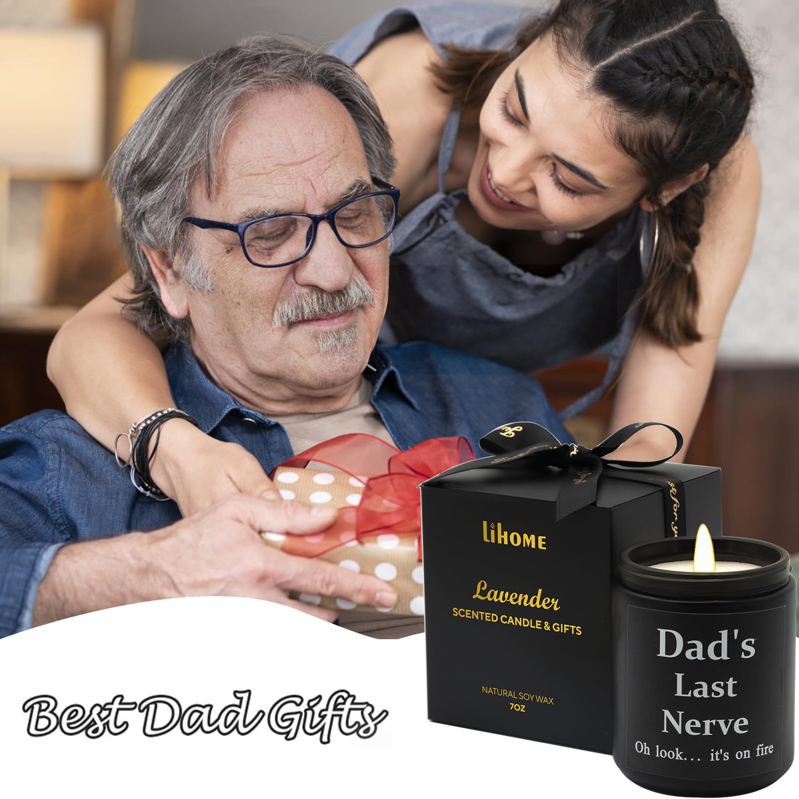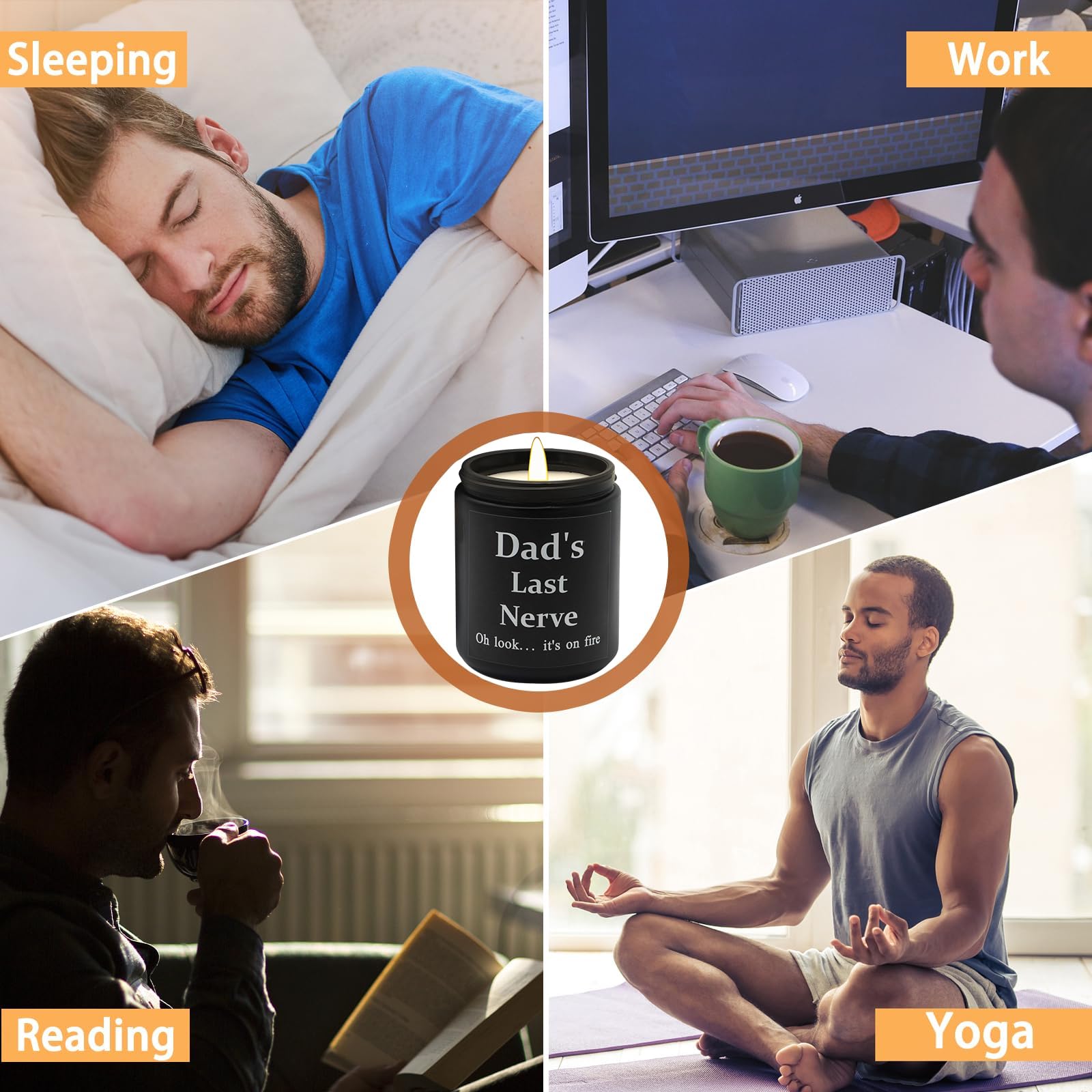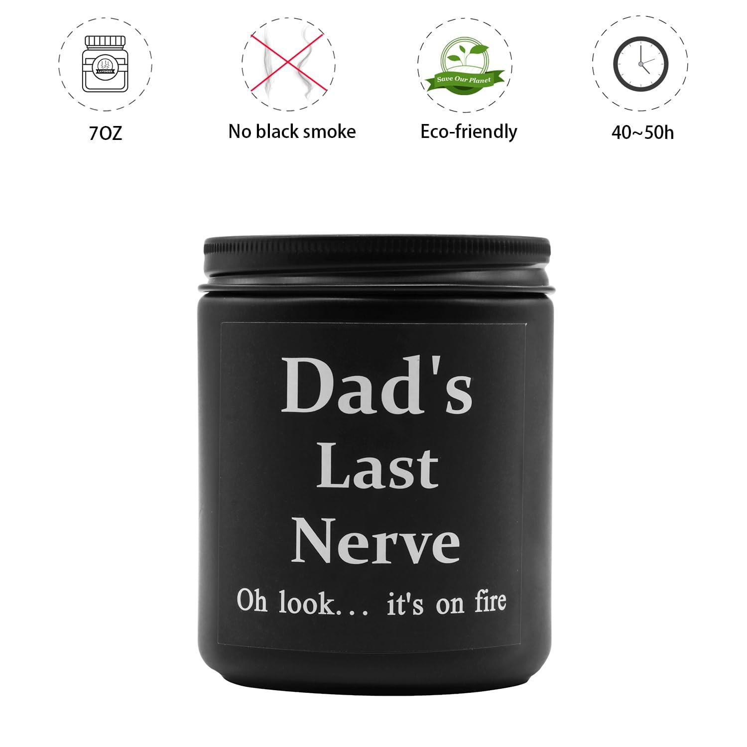 🎁 FUNNY GIFTS FOR DADS - This Lavender candle with a humorous saying"Dad's last nerve oh look... It's on fire". It is a great and cool gifts idea for dads from kids.