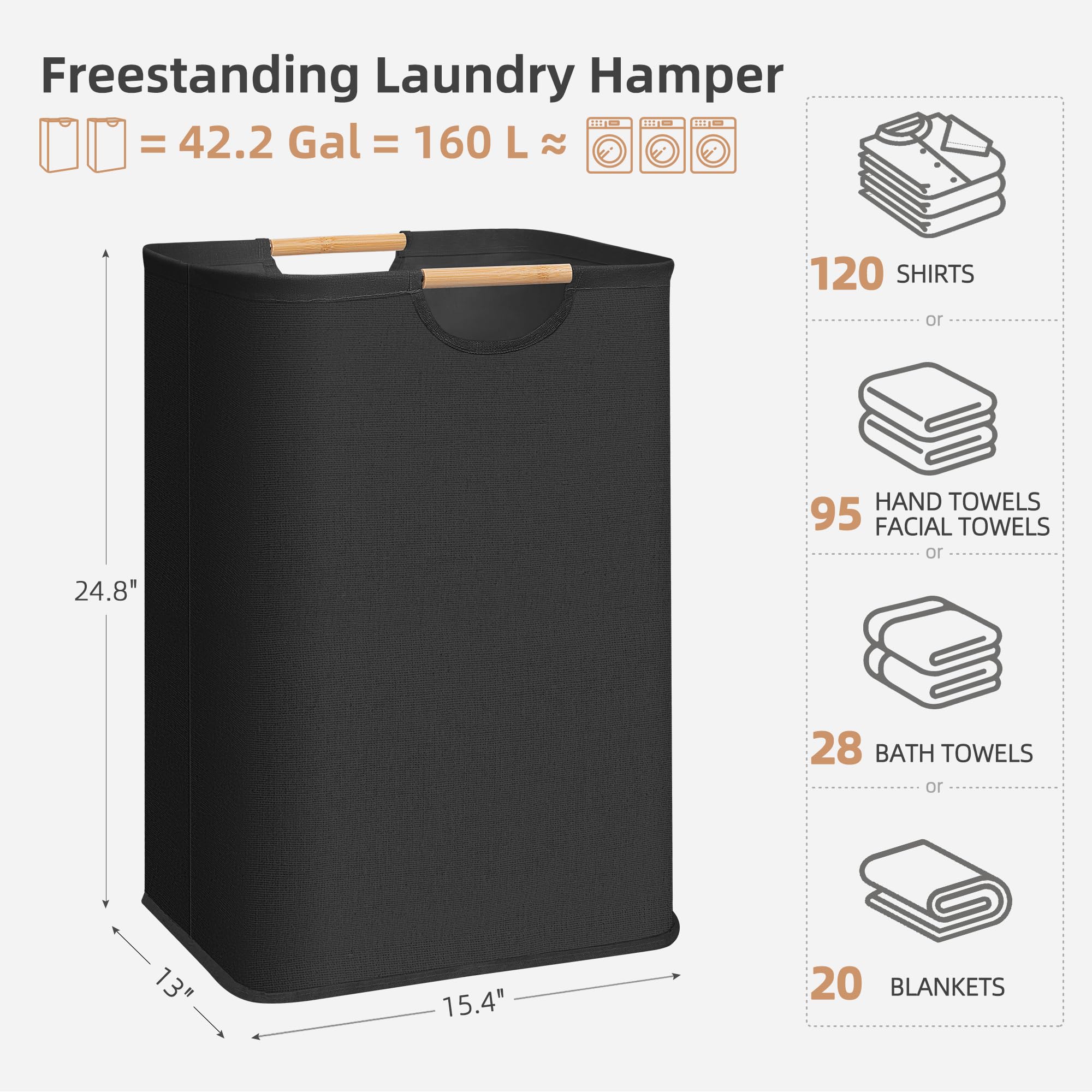 Large Capacity: Each hamper measures 15.4"L x 13"D x 24.8"H and offers 80L of space, perfect for holding up to 3 loads of laundry. With a total of 160L (42.3Gal), this large laundry basket is ideal for busy households and laundry room organization.