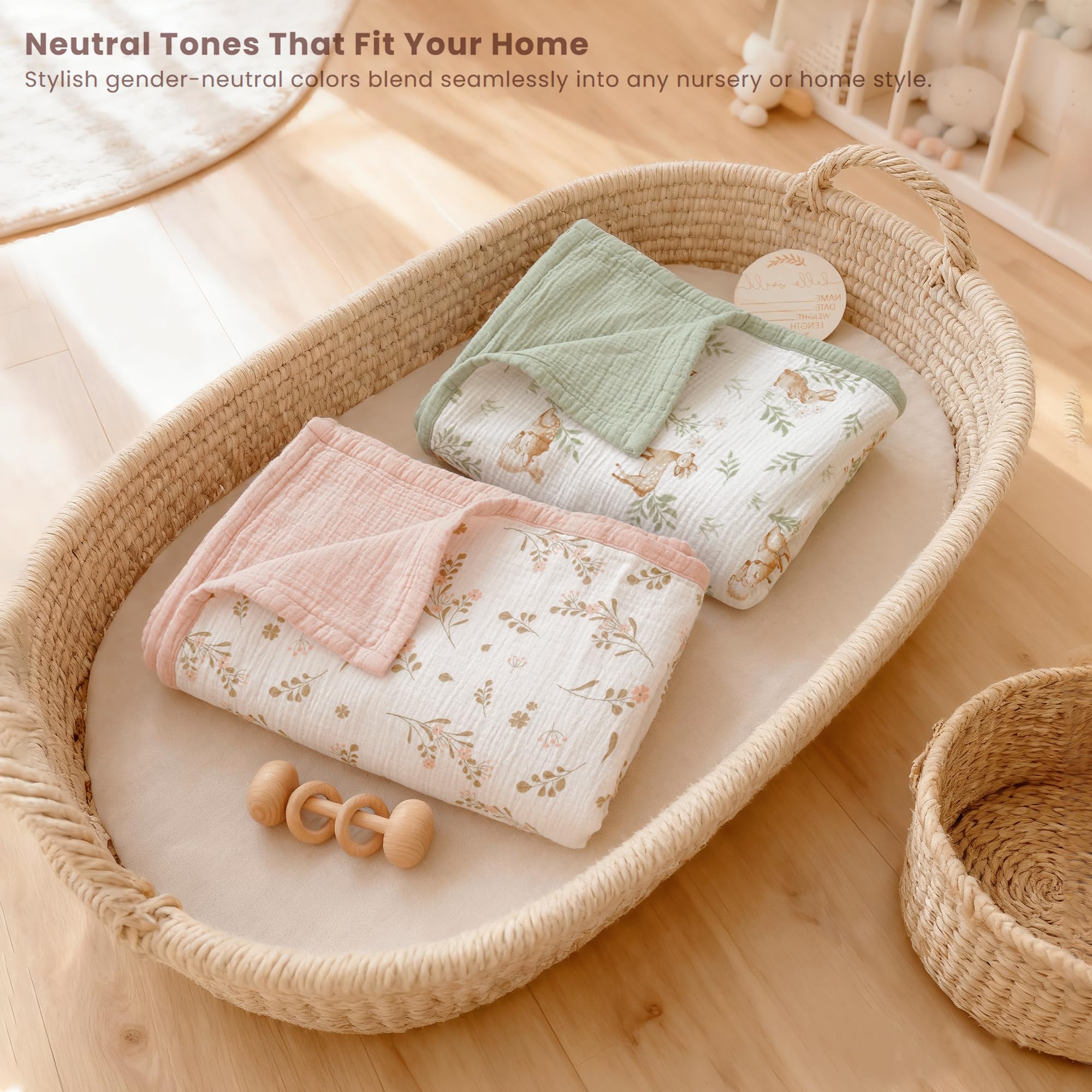 Versatile Use: This blanket is generously sized at 47x47 inches to provide ample coverage to keep your toddler cozy and content. Whether it's for naptime, cuddling time, or simply snuggling up on the couch, our muslin toddler blanket is perfect for any occasion