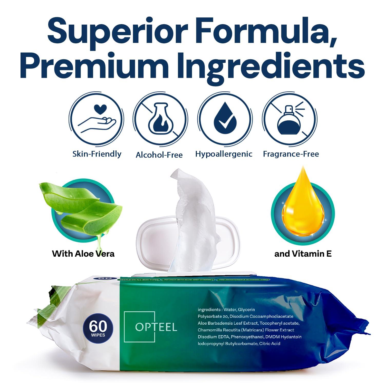 ULTRA-SOFT & GENTLE: Crafted from ultra-soft, hypoallergenic materials, these wipes are suitable for all skin types, including sensitive skin. They function well as medical wipes for adults and personal cleansing wipes, ensuring a soothing experience.