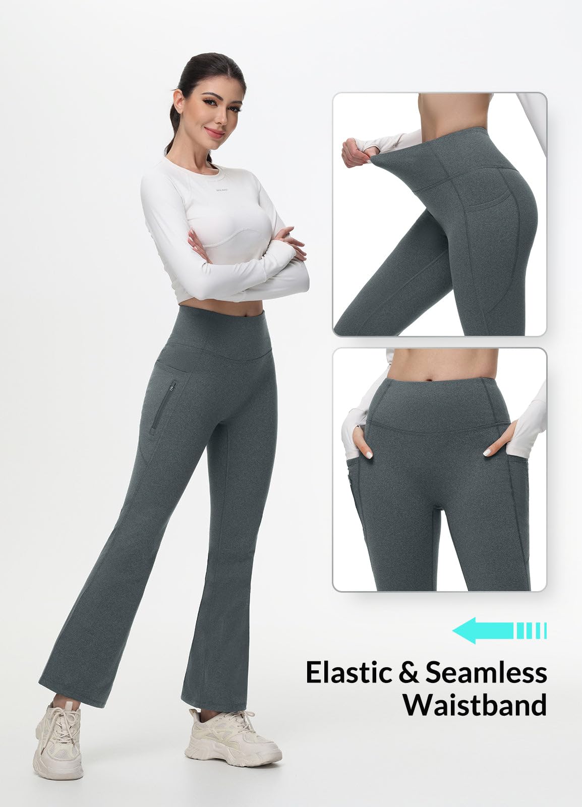 High Waist & Bootcut Design: These yoga pants feature a wide and high-rise waistband, offering gentle compression. Slightly flared pants shape visually slims the silhouette and fits any body type.