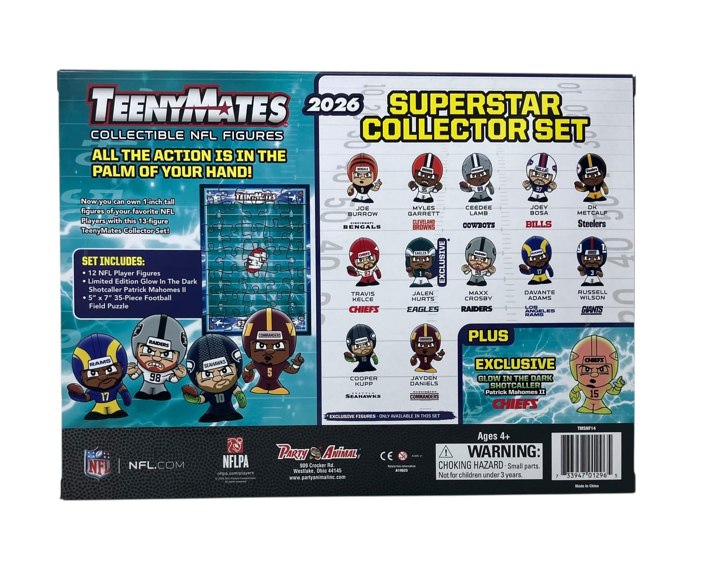 Show your team spirit with the great figures. Fun for the entire family. Pick from the Teenymates 2026 NFL Box Set, Tin, Locker Pack, or Blind pack lot. For ages 4+ (48 months+).