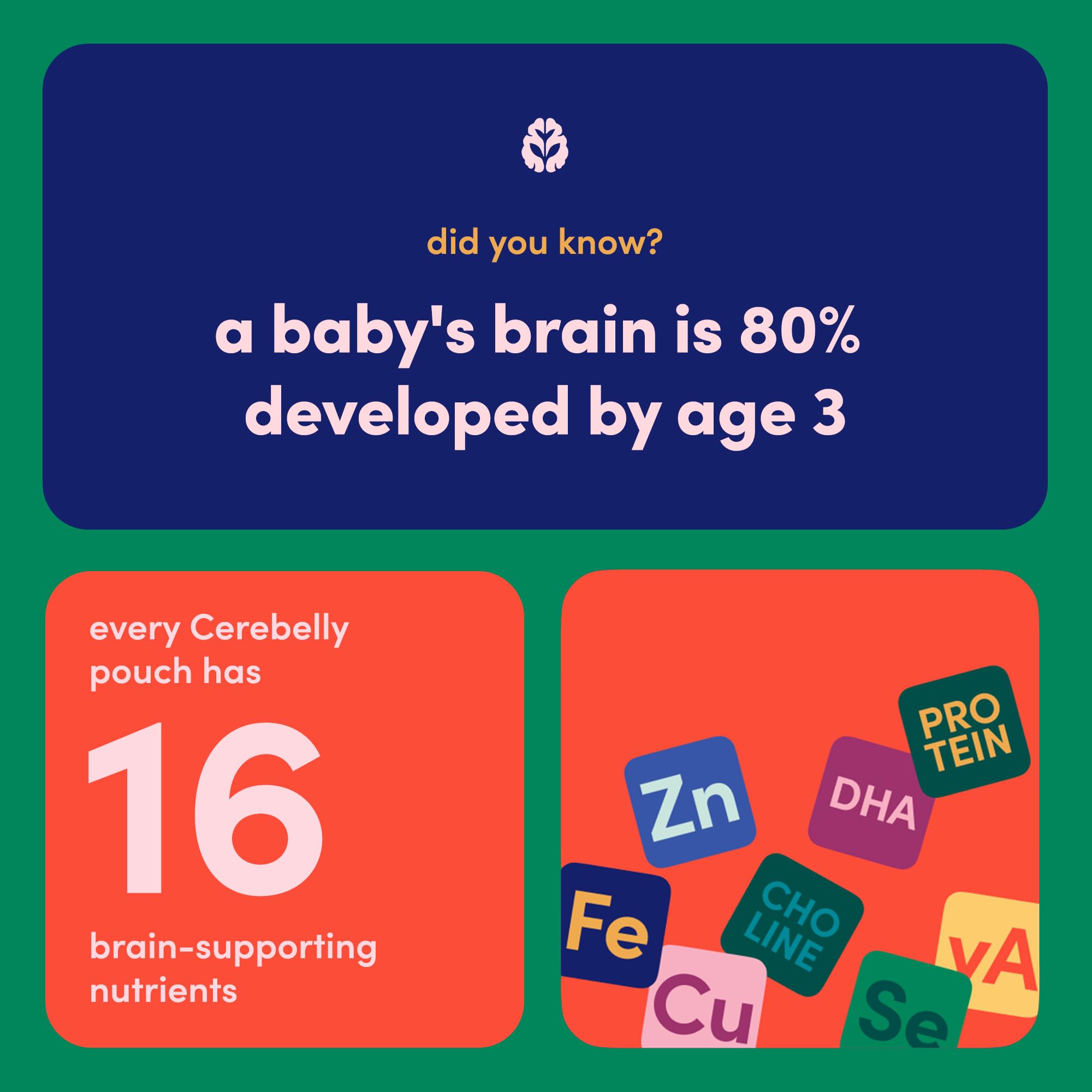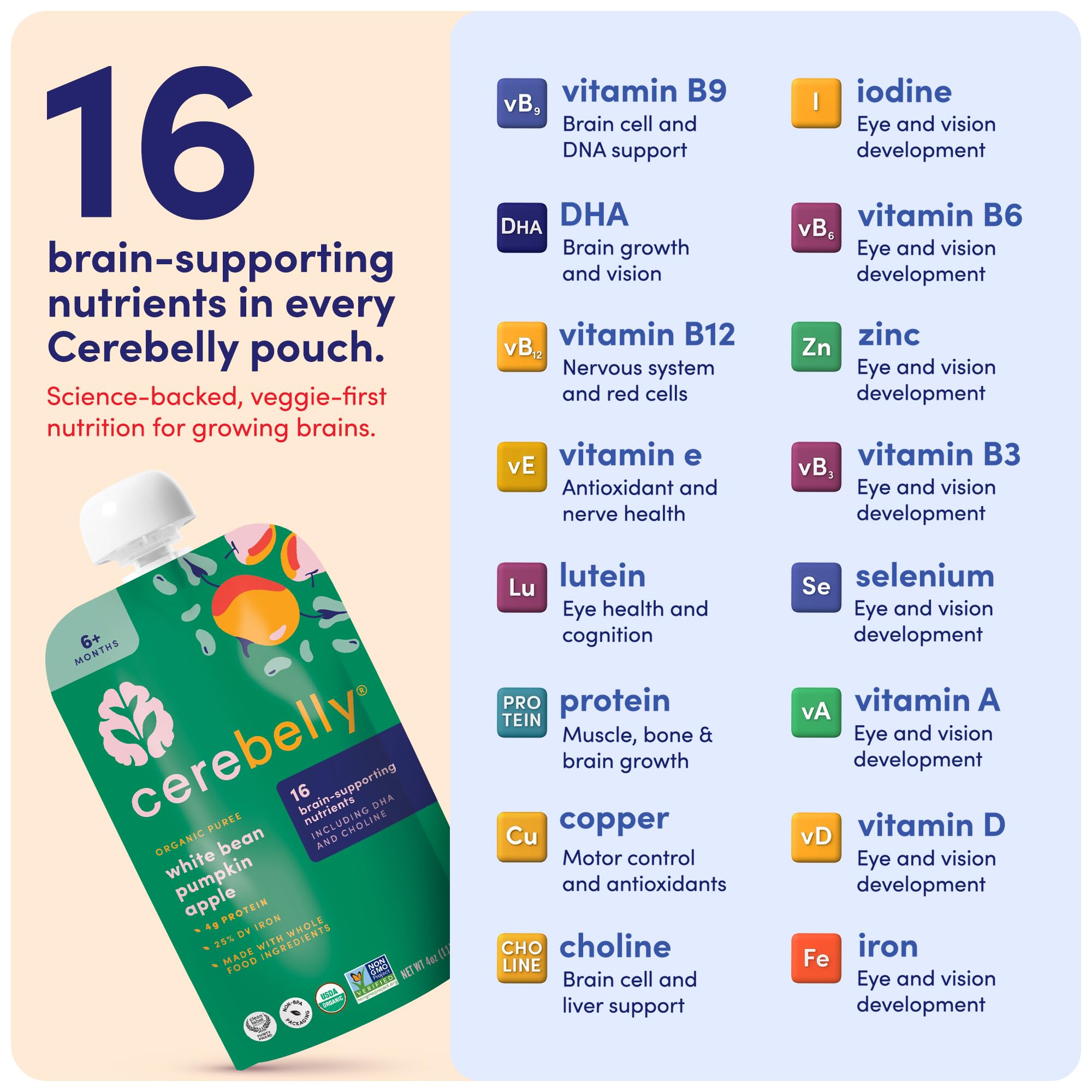 16 BRAIN-SUPPORTING NUTRIENTS β Only baby food with 16 nutrients for development, including potassium, iron & vitamin D