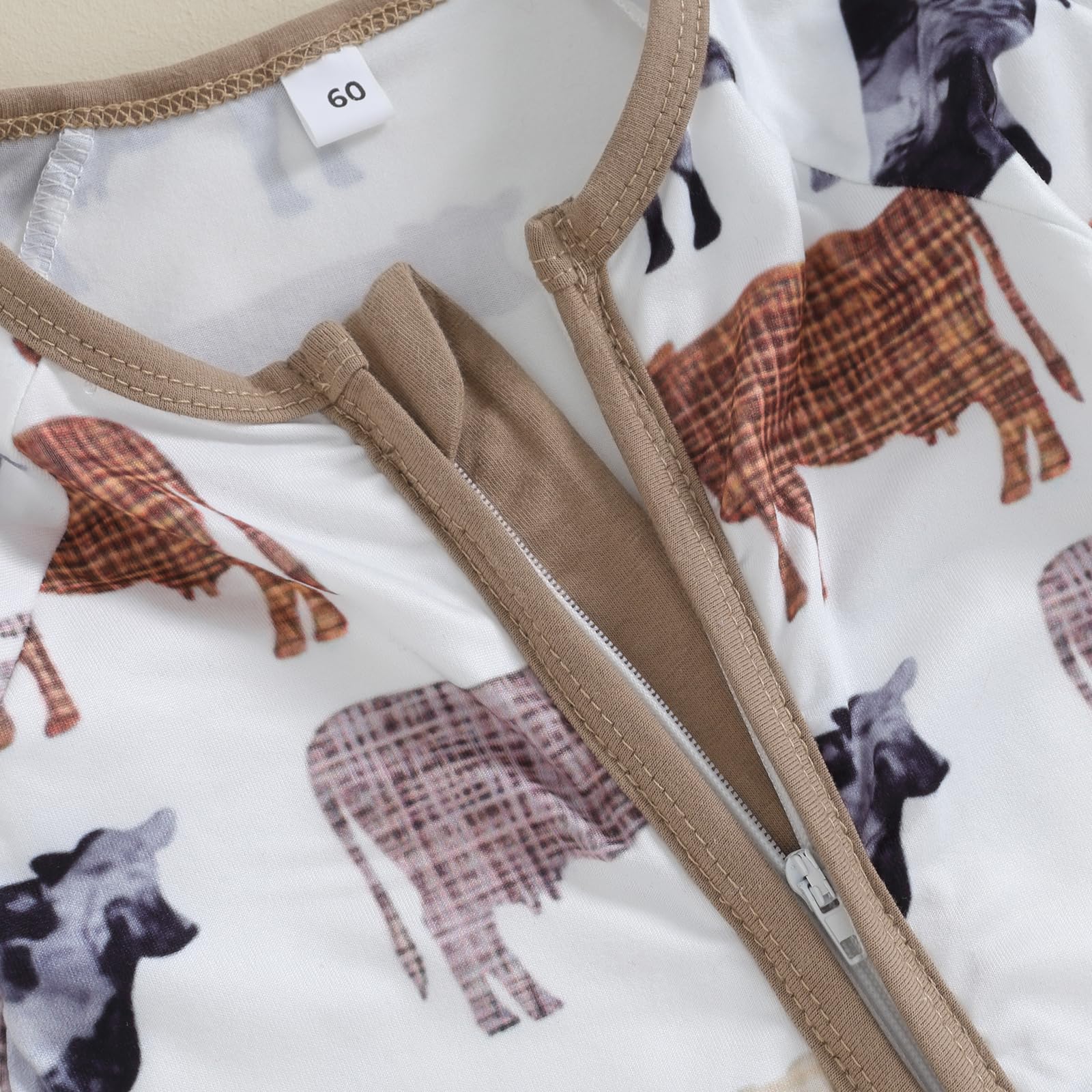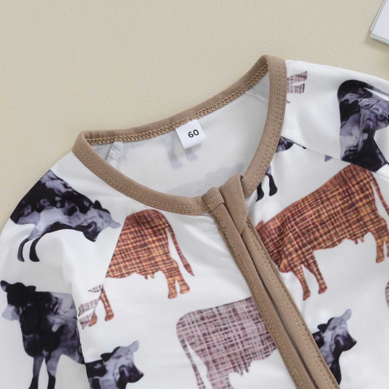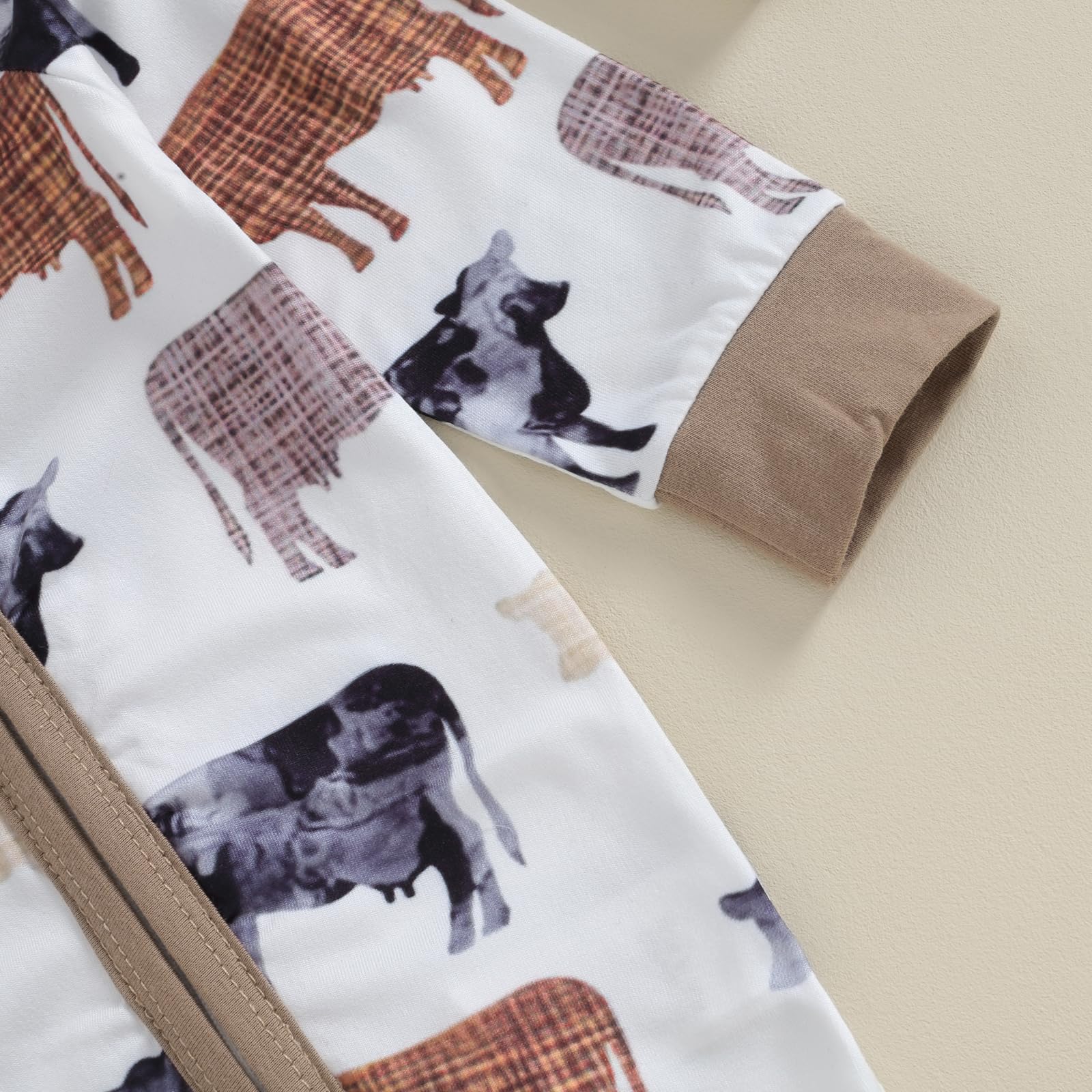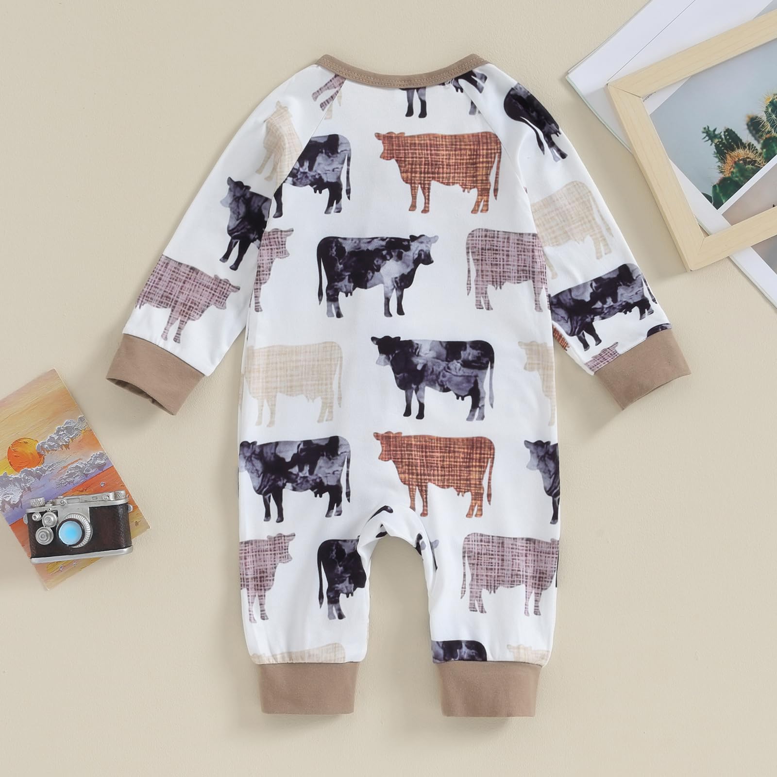 Feature: Cotton infant newborn cute western baby boy fall clothes, highland cow print polo romper jumpsuit one piece outfits, cowboy country clothing.Newborn boy romper with long sleeve, lapel collar, cow print, button down, loose fit design, cute and stylish. Let your baby shine in the audience.
