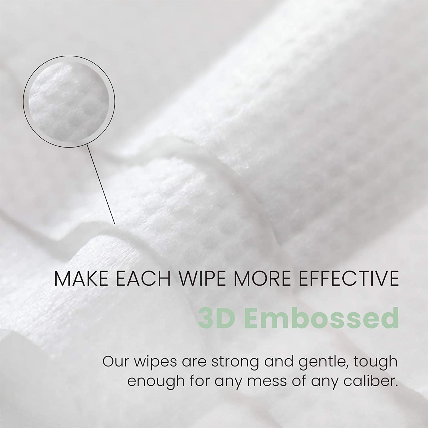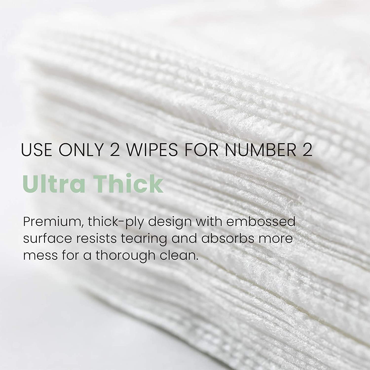 ULTRA-THICK CLOTH: Medical-grade, spun-lace fabric is soft, strong, and textured to lift away mess with fewer wipes. A touch of aloe leaves skin fresh and soothed without residue.