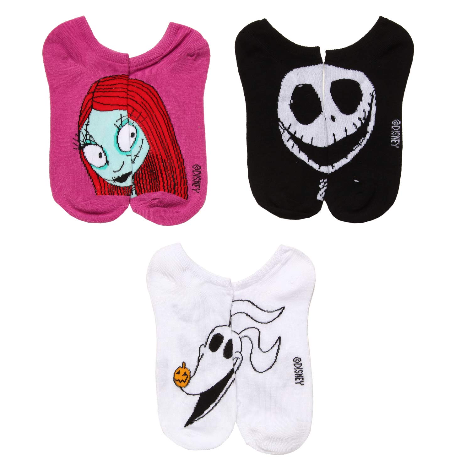 Description This assortment of Nightmare Before Christmas themed socks includes a variety of 5 no show sock pairs with different prints. The fun designs are perfect for all Disney fans and will bring a smile to anyone’s face. These character socks are machine washable and are made of durable and breathable fabrics consisting of 98% polyester and 2% spandex. Five designs to a pack offer variety and flexibility. Wear your favorite character to brighten your day or the day of those around you. Easy to pull on, the socks stretch over the foot and stay comfortably inside shoes. No matter if you wear these socks under your office attire or with your favorite weekend ensemble, you are sure to impress and add a bit of fun to your wardrobe.