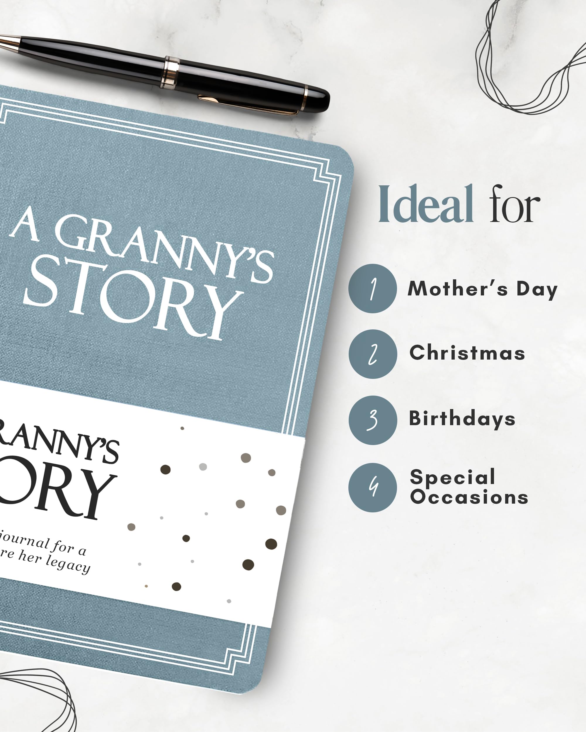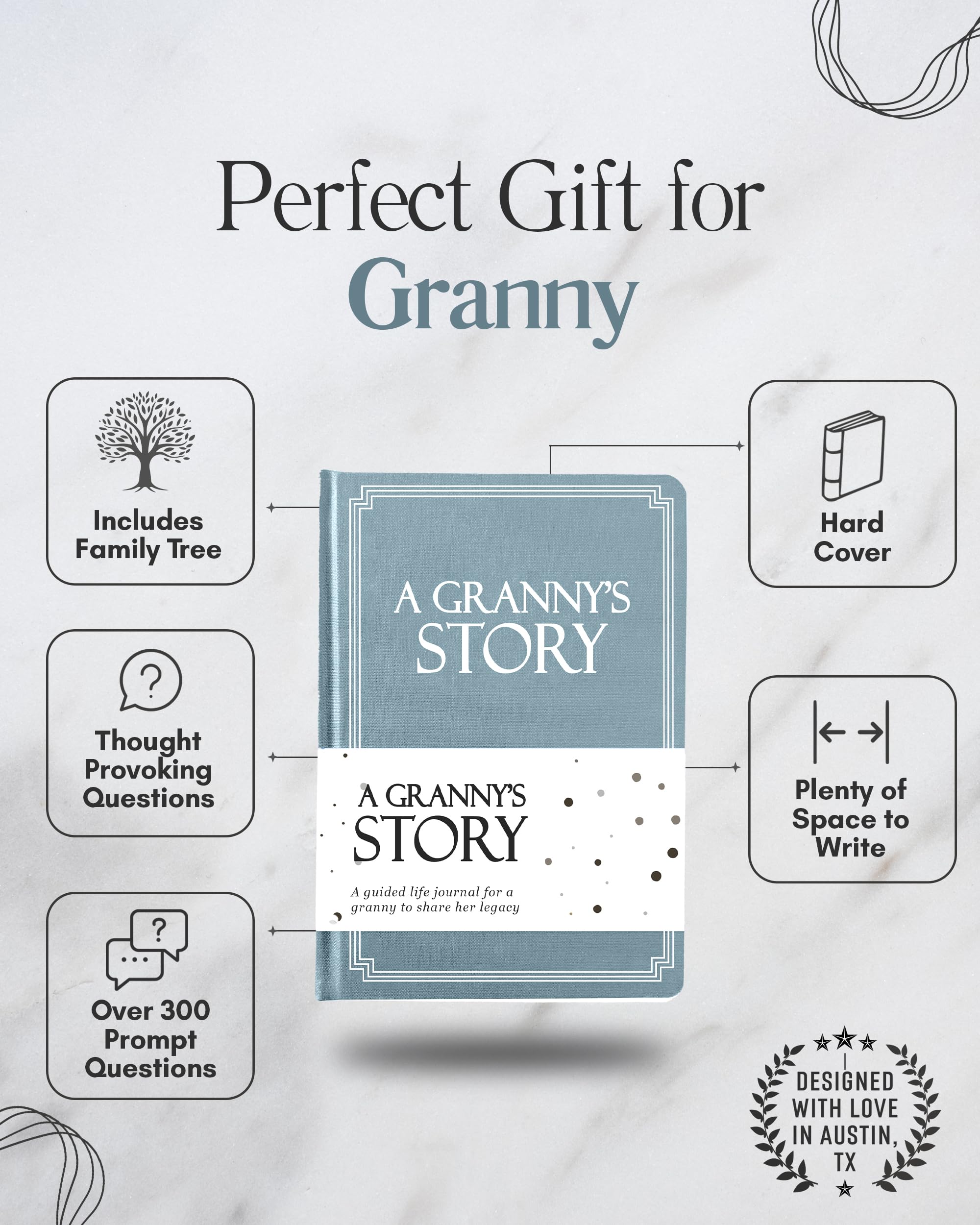 Our guided legacy journal with prompts is a perfect gift idea for a granny. There are more than 250 fun questions to fill out, carefully designed to help a granny share her memories and tell her life story in her own way.