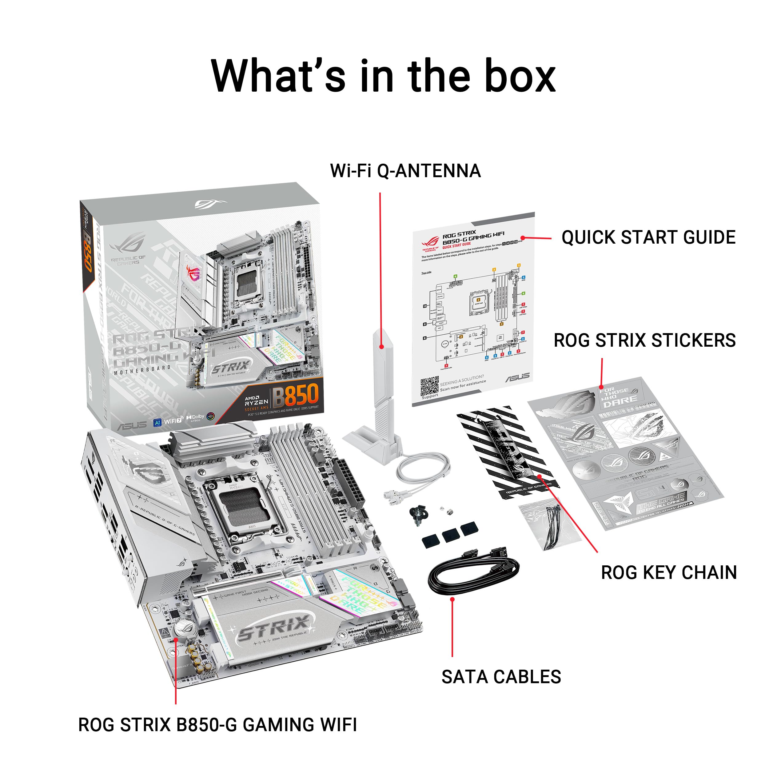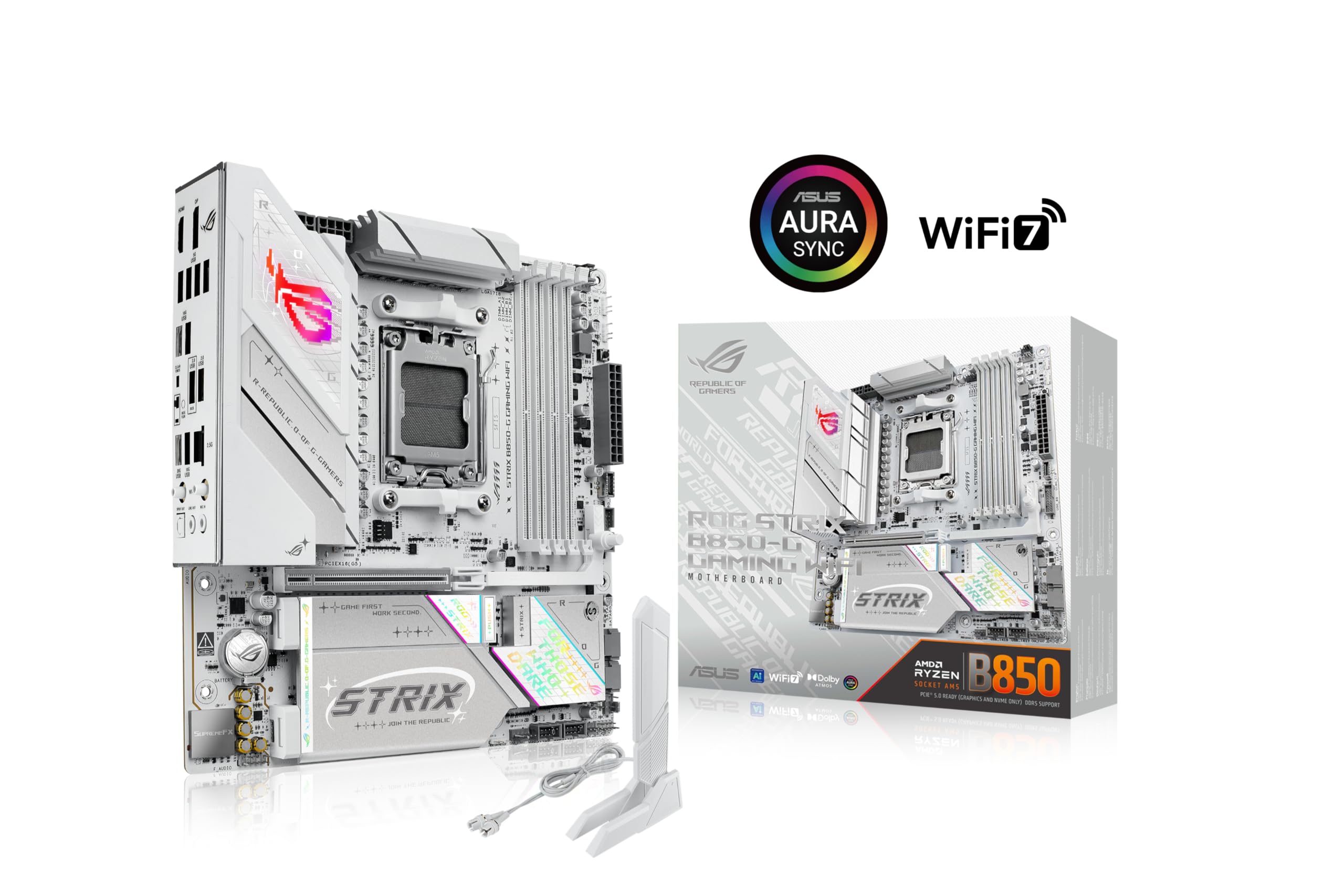 Unleash next-gen performance with the ASUS ROG Strix B850-G Gaming WiFi. Built with a sleek white PCB and featuring support for AMD Ryzen™ 9000 Series processors and cutting-edge DDR5 memory, this motherboard is equipped for top-tier gaming. PCIe® 5.0, USB 20Gbps Type-C® and WiFi 7 ensure unmatched speed and performance