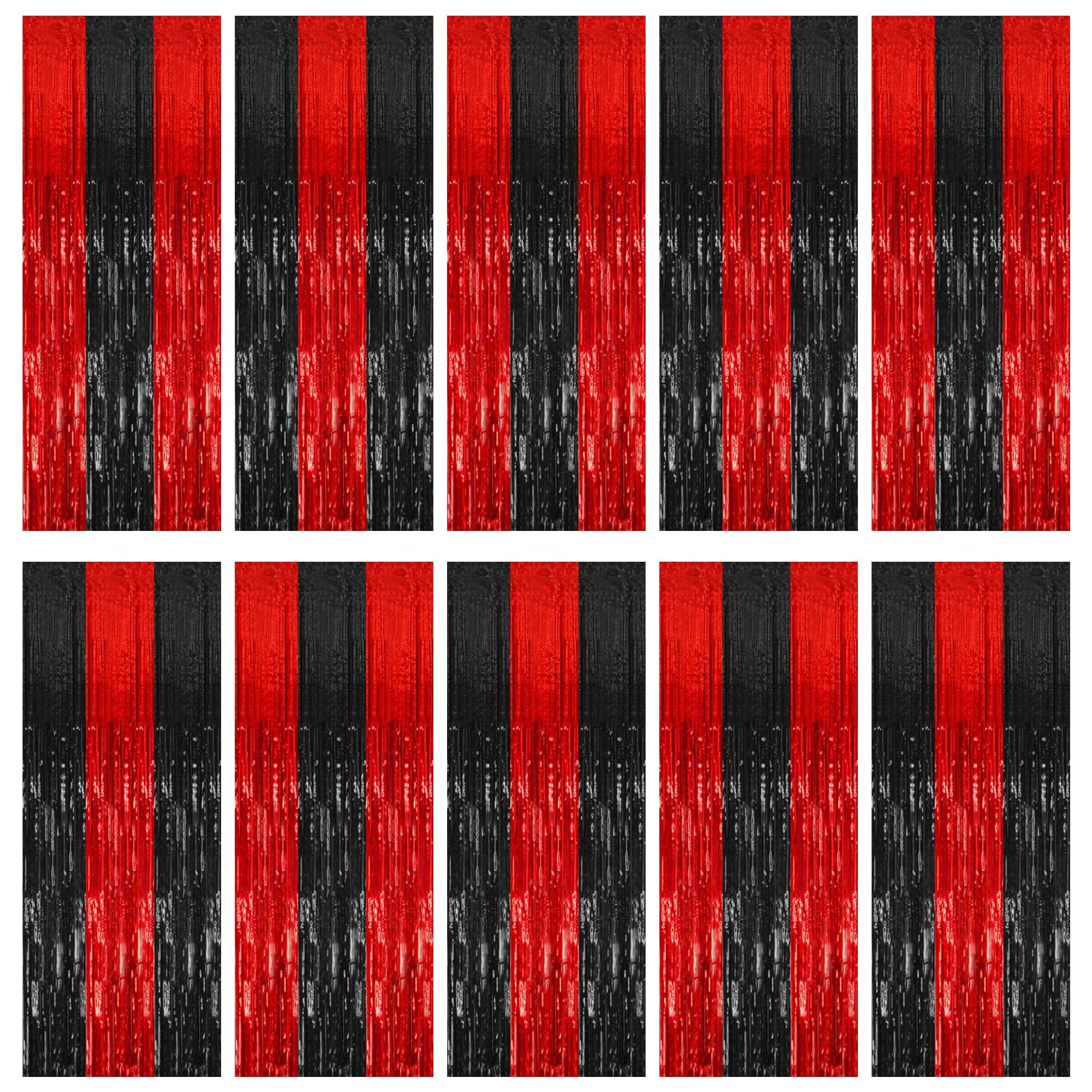 10 Pack Black and Red Backdrop Party Decorations Tinsel Curtain Halloween Party Streamer Foil Fringe Birthday Decorations Photo Booth Fancy Ball Christmas New Year Graduation Party Decor Decor