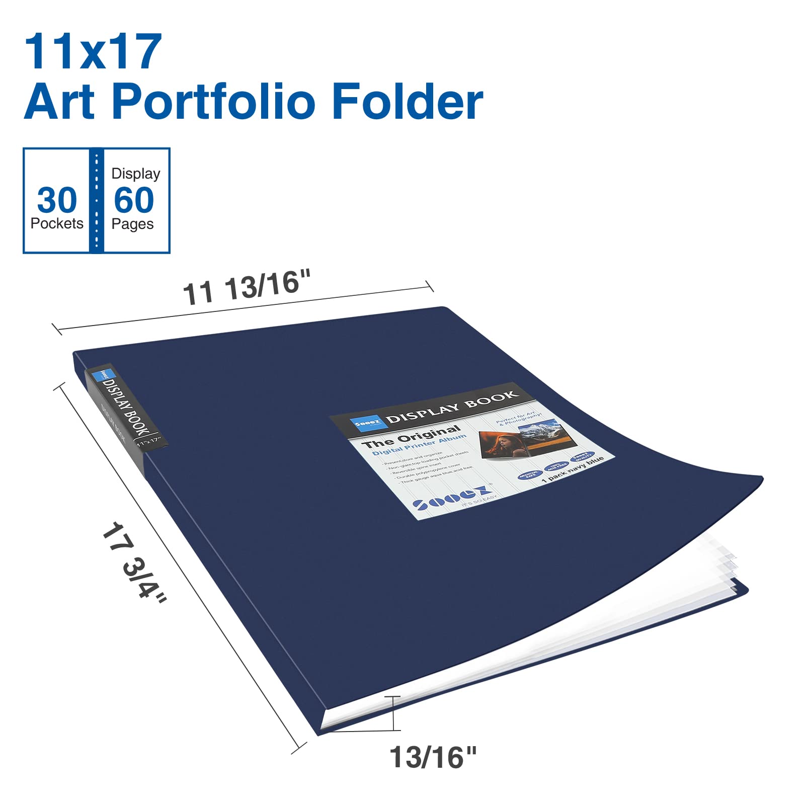 Large 11x17 Art Portfolio Folder: Folder measures 17 3/4" (L) x 11 13/16" (W) x 13/16" (G). Suitable for artwork storage and displaying your 11.18" x 17.4" artwork.