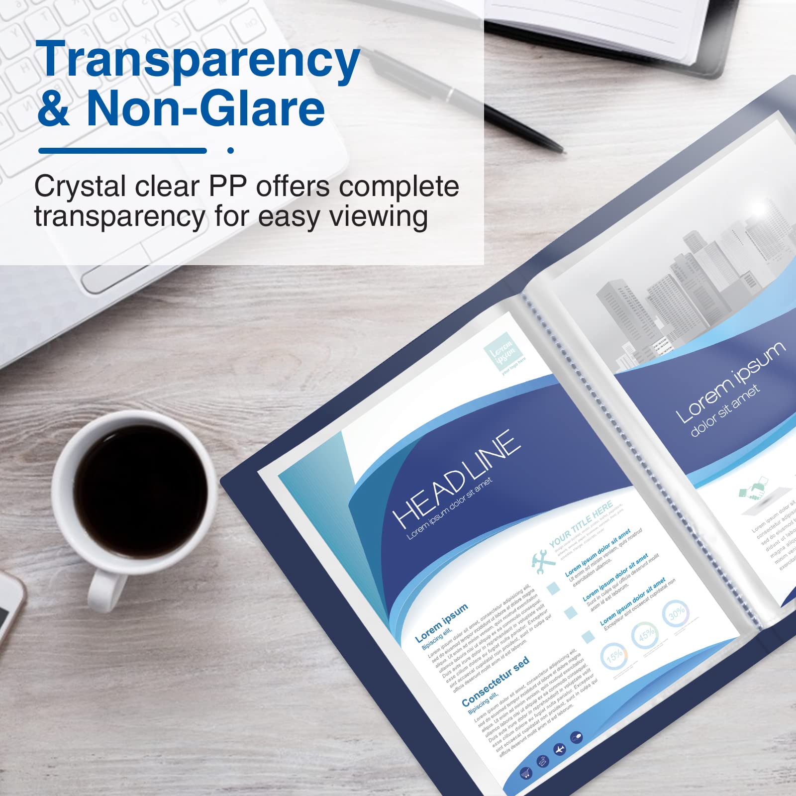 High Transparency & Lies Flat When Open: Our presentation book with crystal clear PP sheet protectors offers complete transparency for checking through and organizing. Bound sheet protector lies flat when open, free your hands.