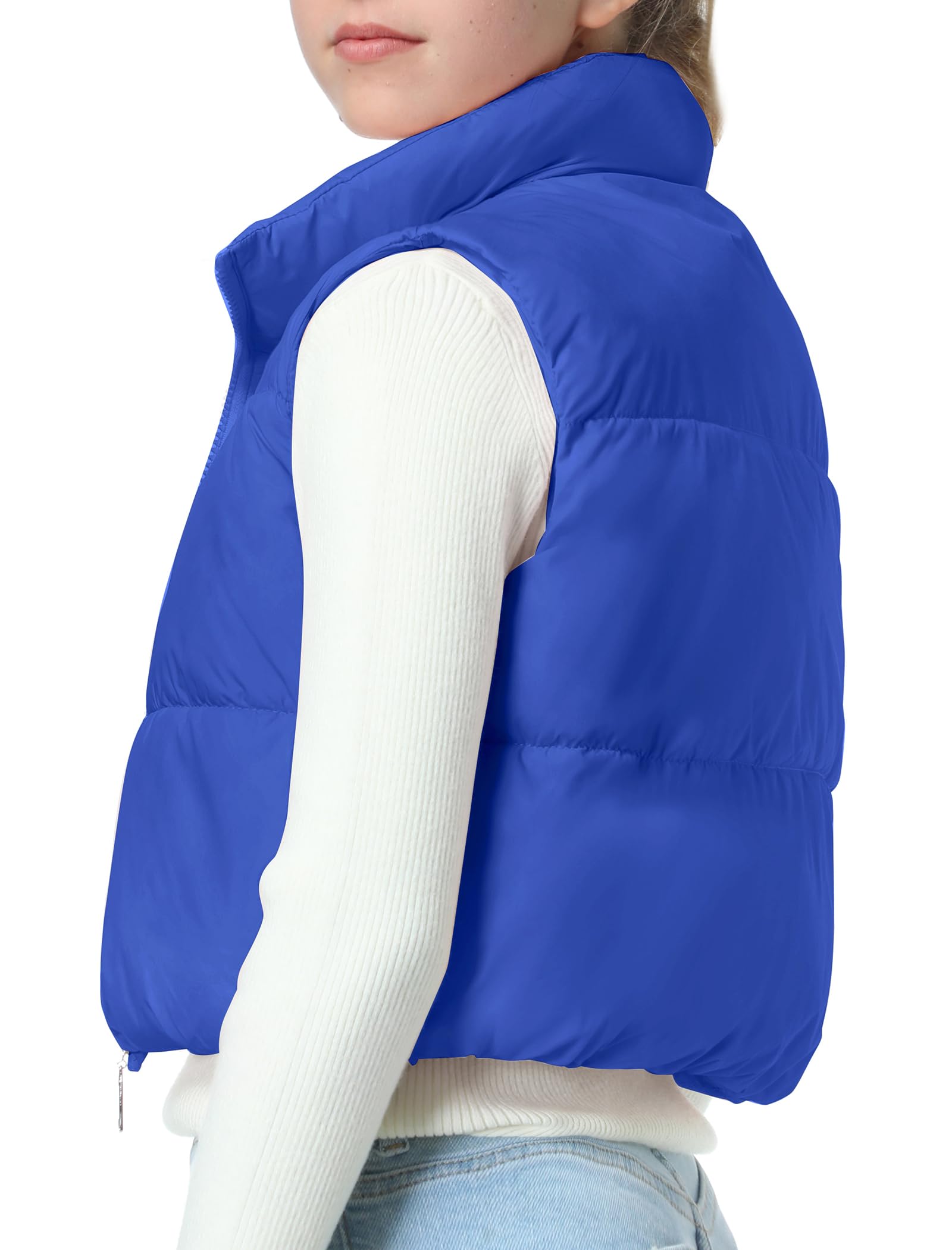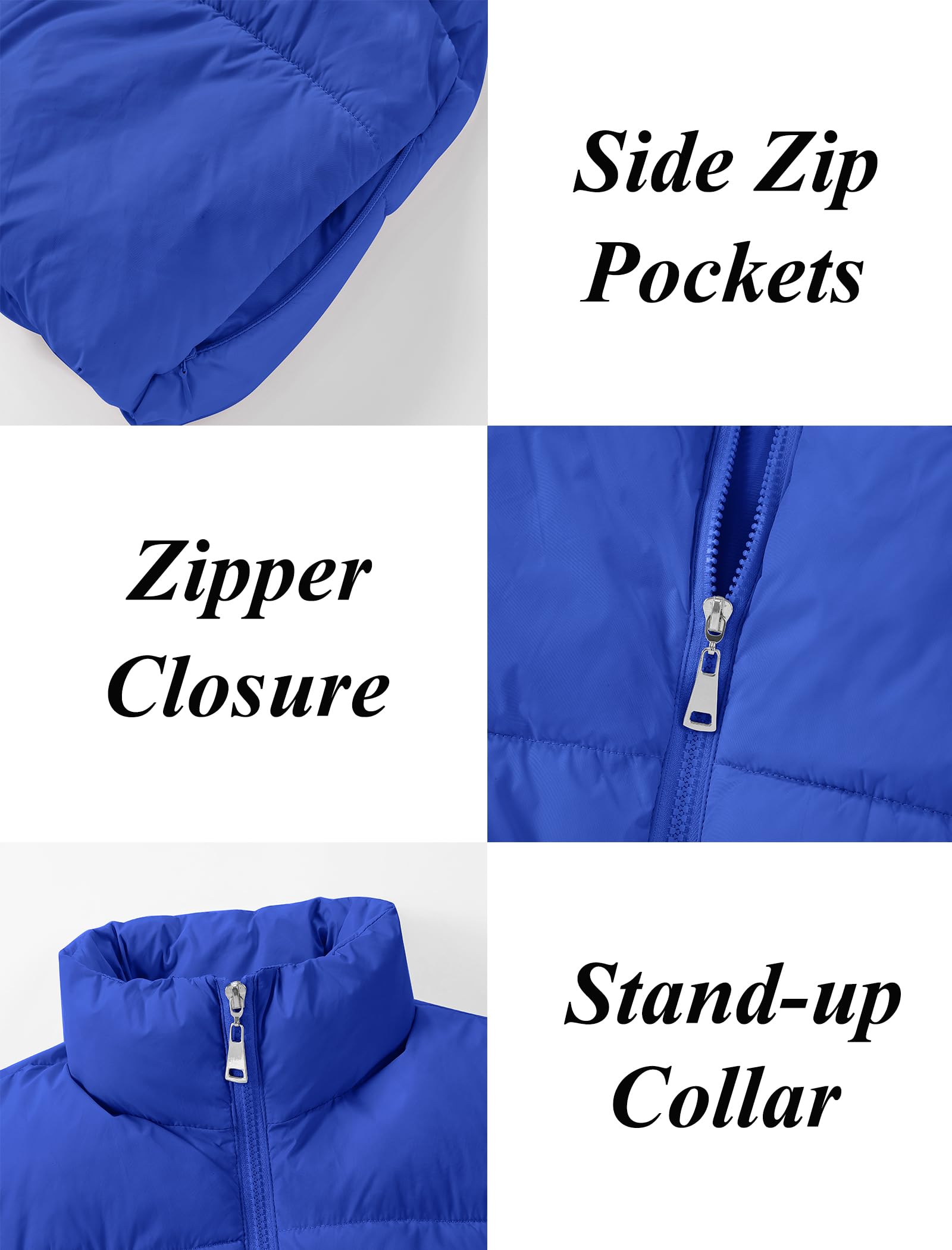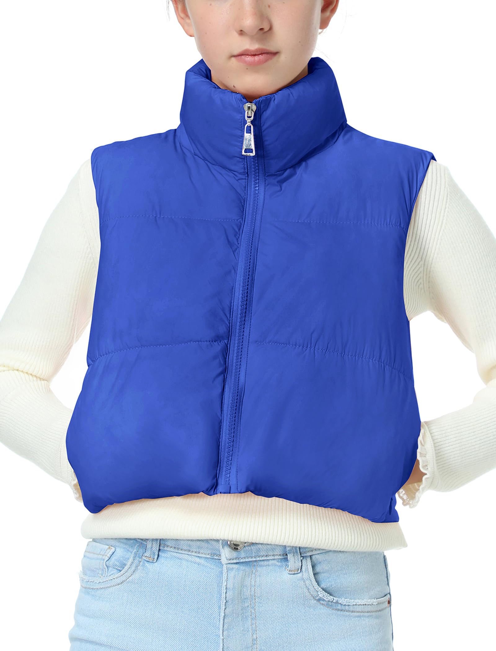 Puffer and Warm: The cropped vest has a sleeveless bodice with a smooth zipper. The stand collar traps heat and block cold to keep your neck warm. Two zipper pockets offer a cozy spot for your hands