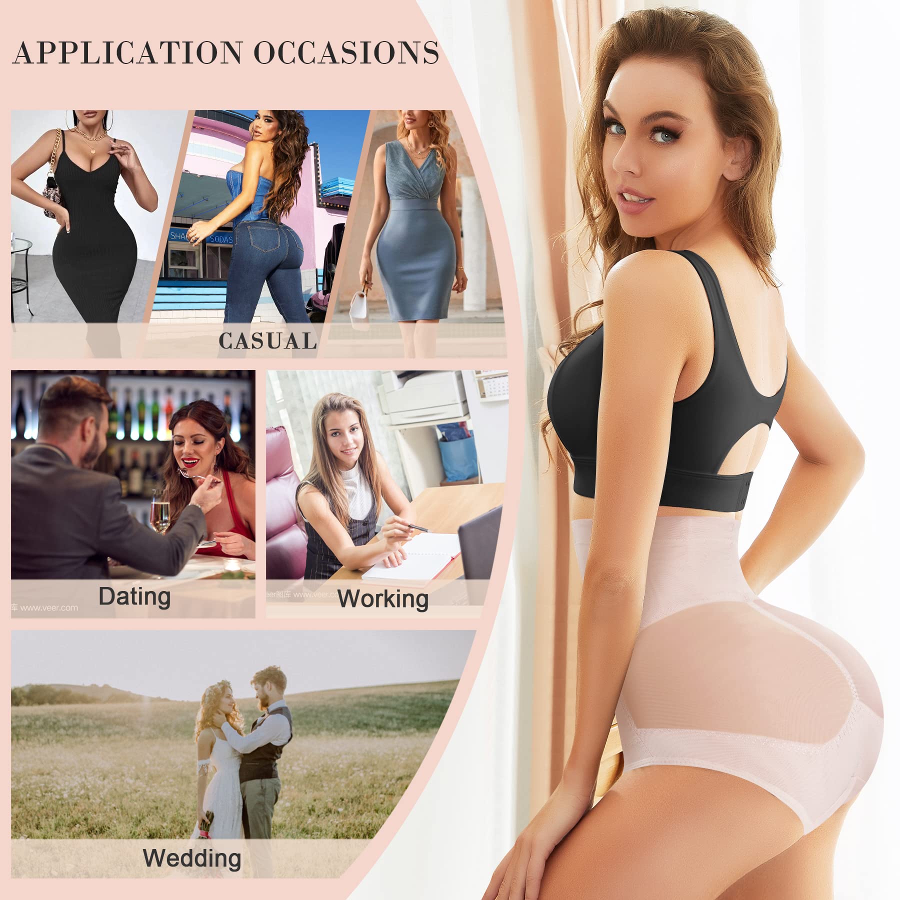 DOUBLE CONTROL WAIST SLIMMER:this booty enhancer is high waist designed to flatten tummy with firm control,hold your stomach in,make your abdomen smooth and tight,give you a sexy hourglass figure instantly.
