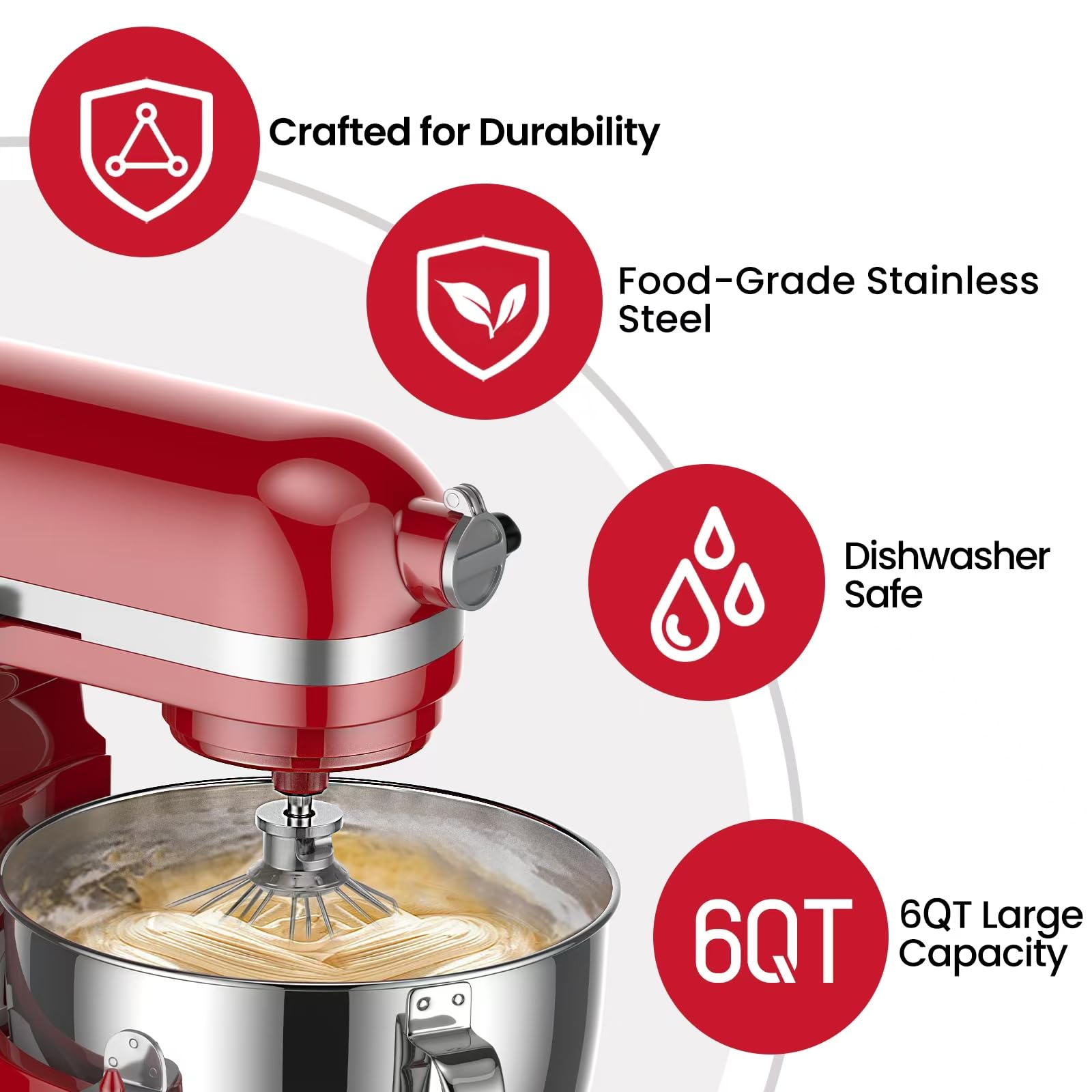 【6 QT Large Capacity】Boasting a generous 6-quart capacity, with a professional appearance and a wider design for easier ingredient addition, this is an ideal choice from family gatherings to entertaining guests