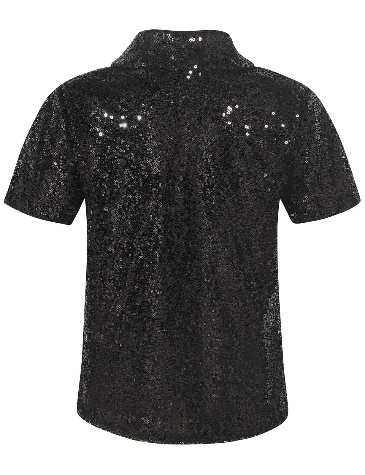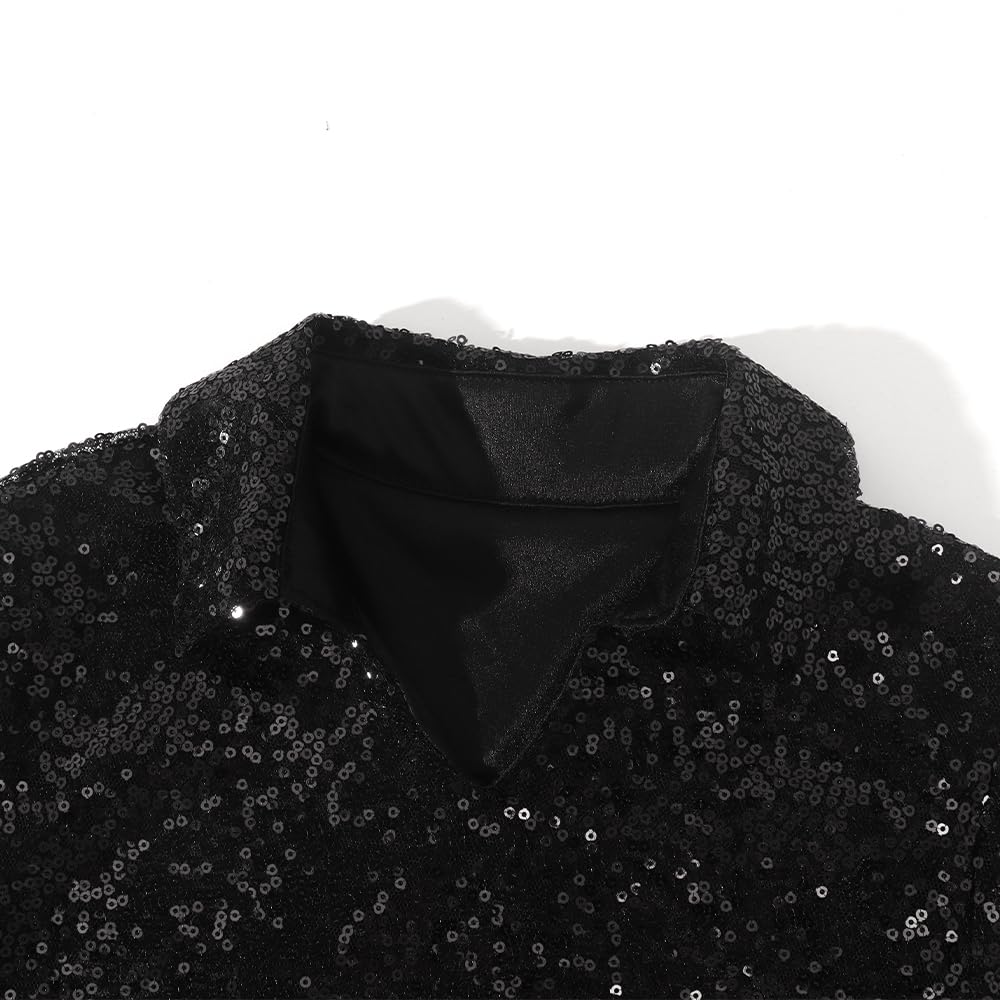 This kids shiny glitter shirt can match chino shorts, skinny pants, suit pants, slacks, jeans, etc., as you like, which creates a charming silhouette and adds to the overall dressy look