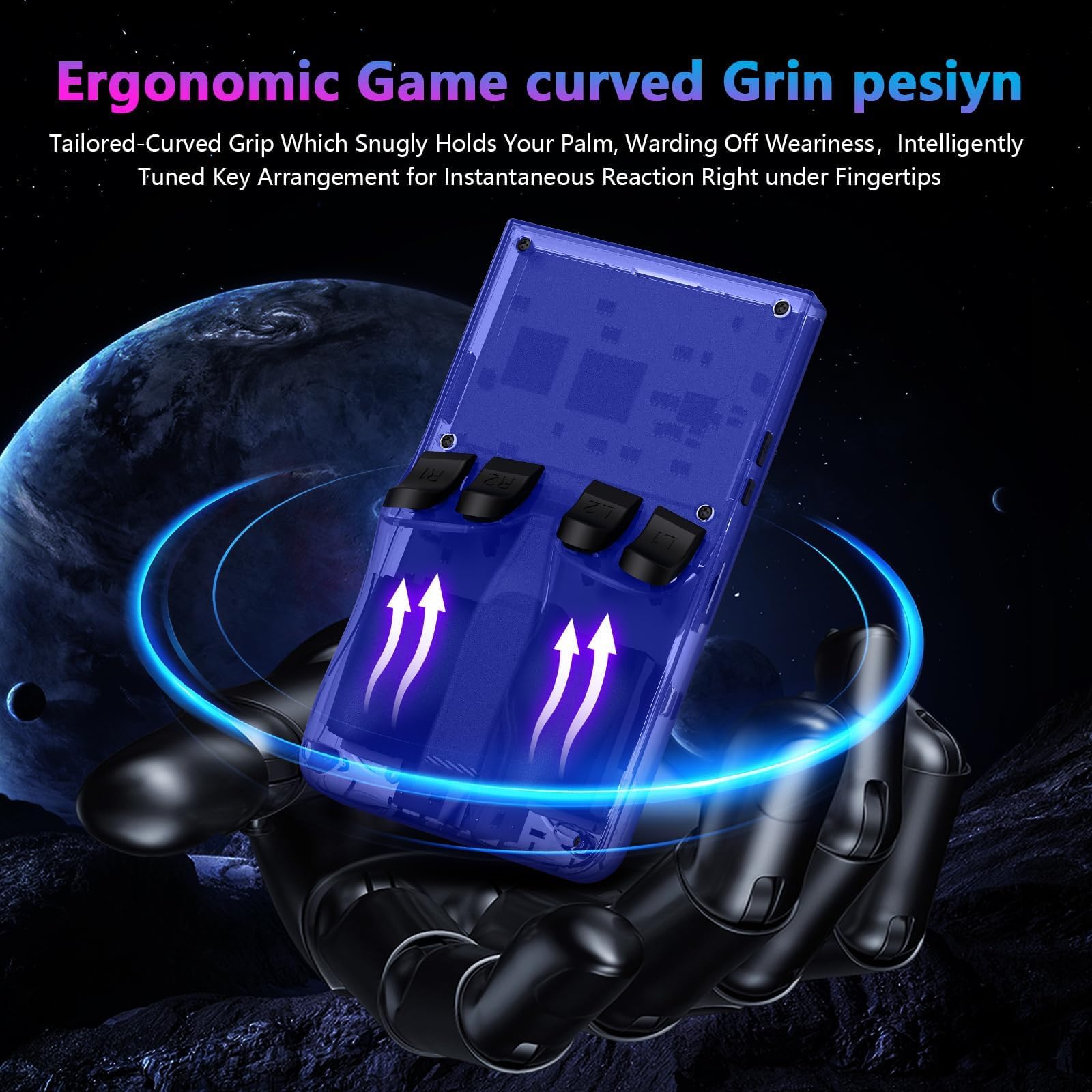 【Dual Joysticks & Ergonomic Contro】DVJQSN R36MAX video game emulator handheld features a streamlined body with triggers and directional pads responding swiftly, The grip design on both sides has been optimized, ensuring comfortable and precise control for immersive gamelab console.