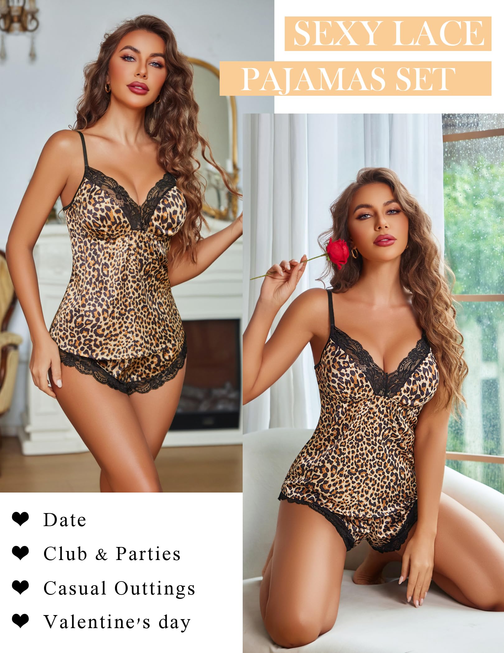 ❤️Feature: Sexy Lingerie Set has adjustable shoulder straps, fine condole belt, leak the back of half, tie-in shorts, the cute and sexy 2 piece cami sleep sets for women.