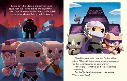 Kids will love fighting crime in this awesome Little Golden Book collaboration from Nickelodeon’s Teenage Mutant Ninja Turtles and toy maker Funko POP! Get ready for a gnarly ninjitsu adventure with Leonardo, Raphael, Donatello, and Michelangelo! When the evil Shredder and his henchmen, Bebop, and Rocksteady, unleash a malevolent robot named Metalhead, it’s up to the Teenage Mutant Ninja Turtles to save the day. Featuring the iconic art style from cutting edge toymaker Funko POP!, this action-packed storybook is perfect for children ages 2 to 5—and fans and collectors of all ages. Little Golden Books enjoy nearly 100% consumer recognition. They feature beloved classics, hot licenses, and new original stories. . . the classics of tomorrow. The Teenage Mutant Ninja Turtles have been icons since their creation in 1984. Leonardo, Raphael, Donatello, and Michelangelo love to defeat bad guys and celebrate with pizza. Cowabunga!