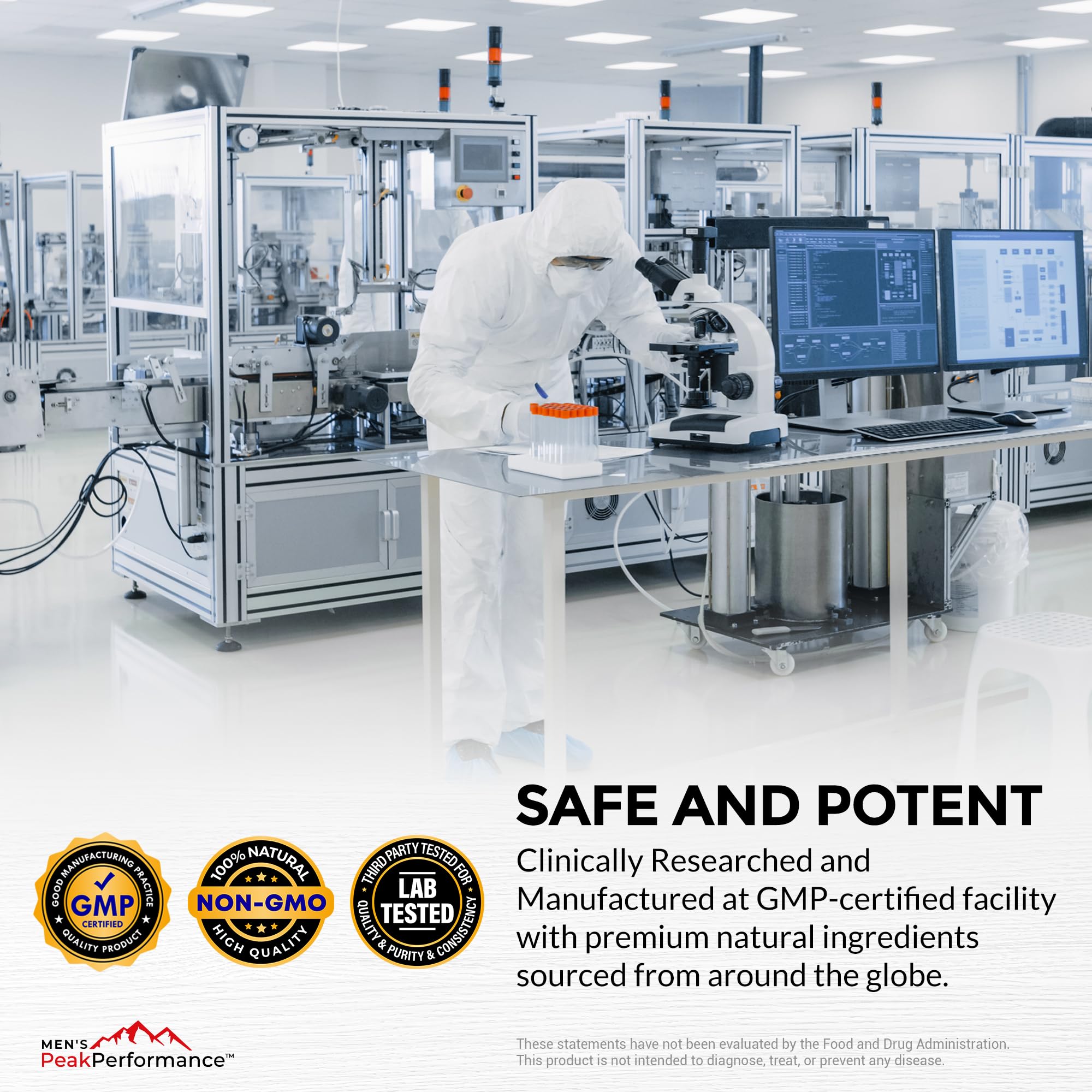 A BRAND MEN TRUST, CRAFTED WITH HIGH-QUALITY AND SAFE INGREDIENTS: PeakStamina is formulated using premium, naturally sourced ingredients of the highest quality, our men's Stamina, Energy, Drive and Endurance supplement is non-GMO, gluten-free, and contains no additives or unnecessary fillers.Every batch is rigorously 3rd party tested and produced in a GMP-certified facility, undergoing strict lab analysis and quality control to ensure purity and potency. This ensures you receive a safe, effective, and high-quality product.