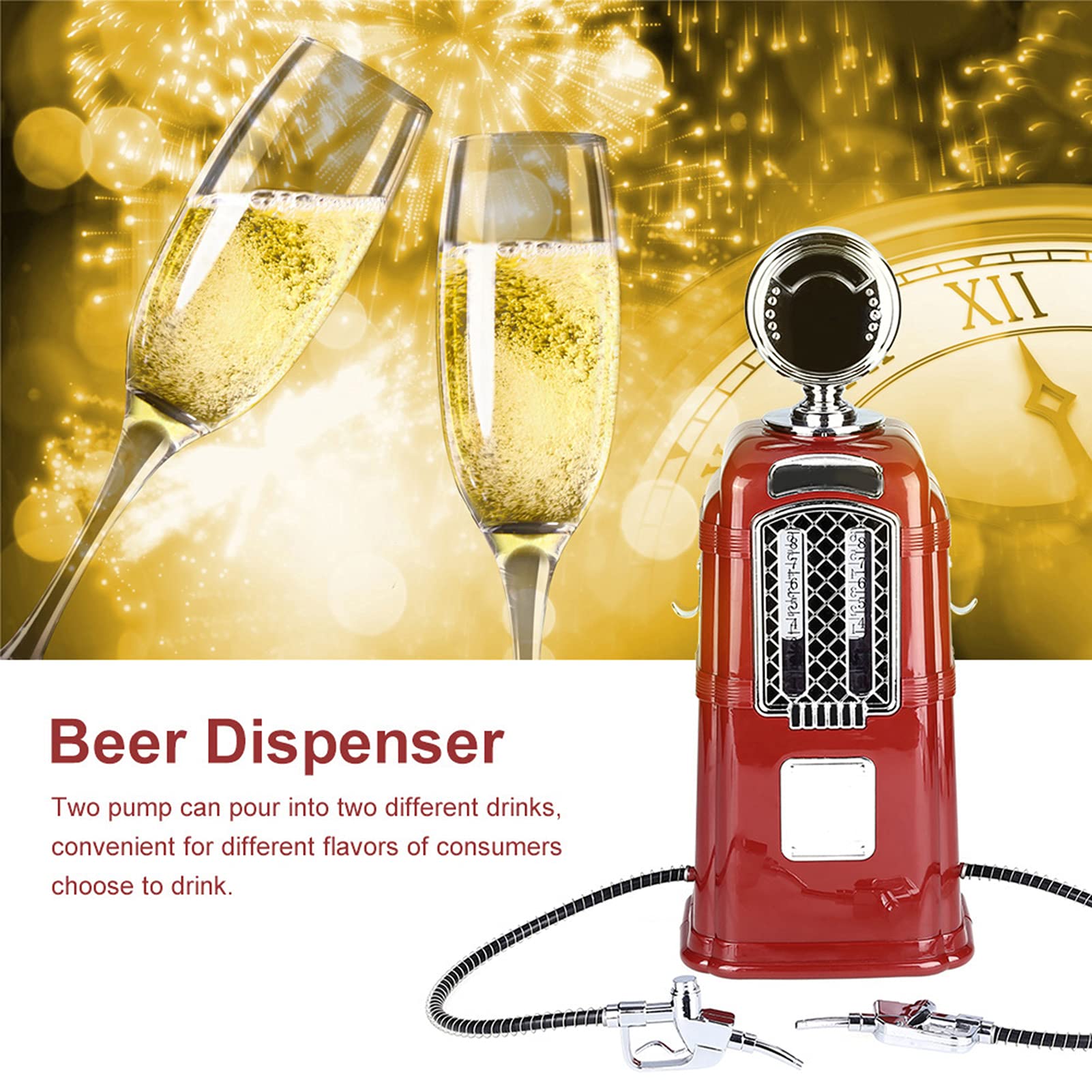 Description: The liquor dispenser has 1000cc capacity, for serving whisky, liquor and beer in home bars, or adding a retro to your drinks service, enough for serving all your guests. Features: Food grade material, safety and health guarantee, don't worry about this damage the body. Easy to use. Simply fill the with your favorite liquor and serve it by pumping through the hose. A smaller version of the shape of the gas station, so eye-catching and interesting! Suitable for beer, alcohol, water, , wine, soda water, soft drinks and widely used in bars, hotels, tea houses, KTV, family and soon. Two pump with transparent layer design, can pour into two different drinks, convenient for different flavors of consumers choose to drink. Specification: Condition: Brand New Material: ABS Color: Red/Black (optional) Capacity: 1000 CC Size: approx. 21.5 x 17.5 x 50cm / 8.46 x 6.89 x 19.69inch Package Weight: approx. 1.2kg~1.3kg Package Included: 1 x Beer Dispenser Note: 1. Please allow 1-2 cm error due to manual measurement and make sure you do not mind before ordering. 2. Please understand that colors may exist chromatic aberration as the different placement of pictures.