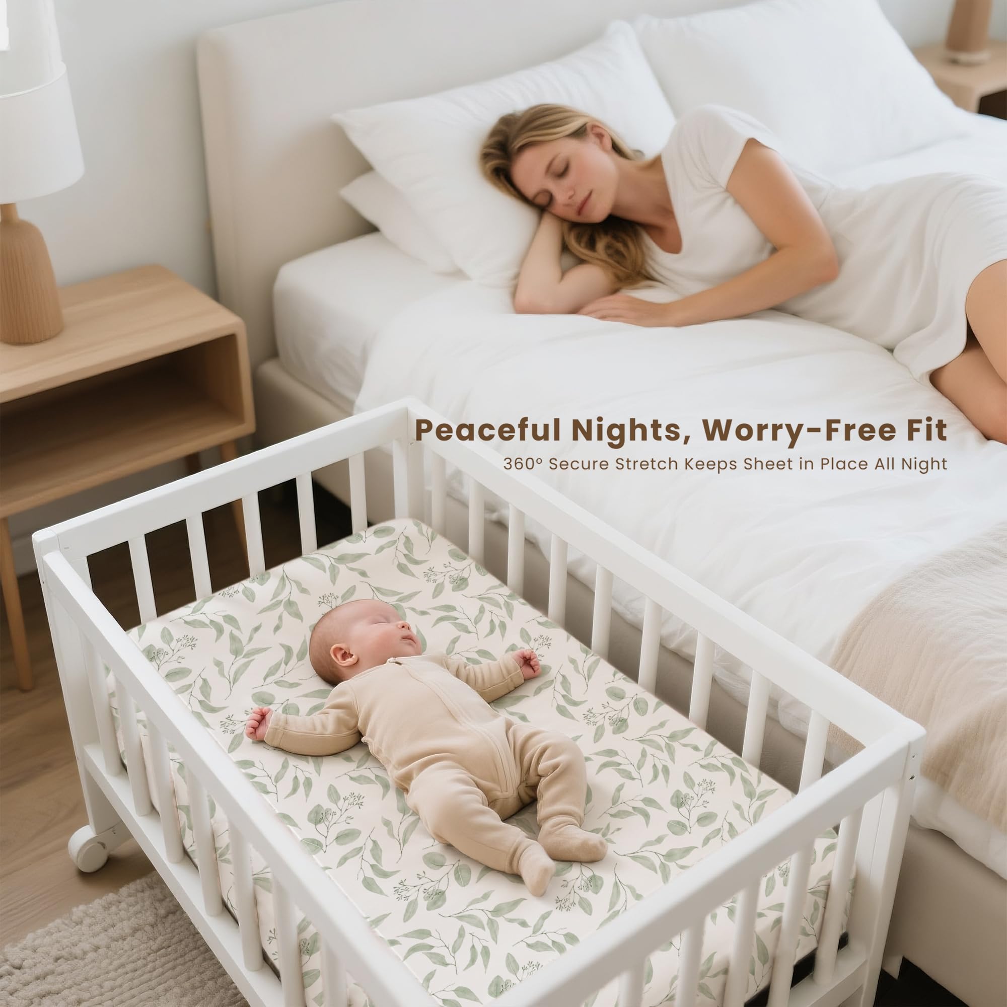 Stretchy & Soft: Made from 89% polyester and 11% spandex, Konssy bassinet sheets are ultra-soft and stretchy. They offer a breathable feel, absorb sweat, and promote airflow, ensuring your baby stays cozy and comfortable for restful sleep