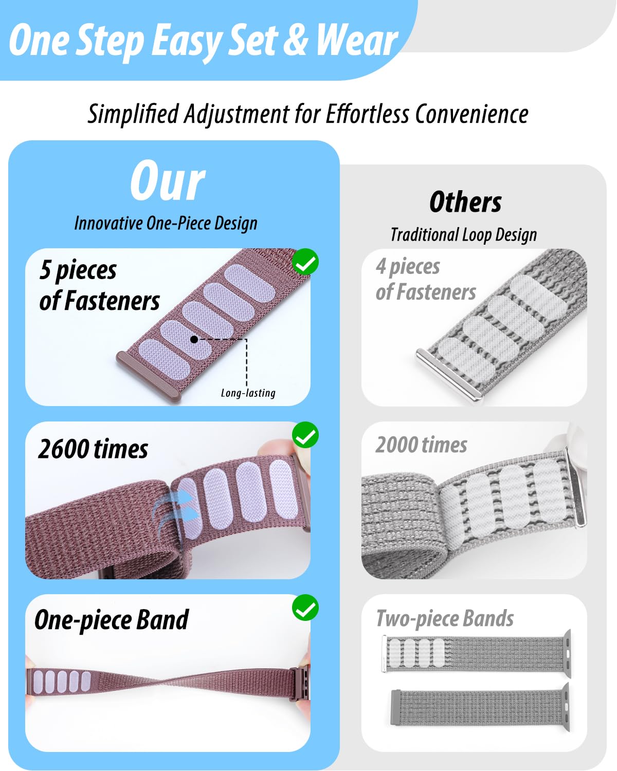 [Easy to Wear]: Our watch bands for women men feature a magic tape closure for easy, one-handed length adjustments, ensuring a snug fit during workouts and outdoor adventures. Durable, breathable, and comfortable, they keep your smartwatch securely in place no matter how active you get