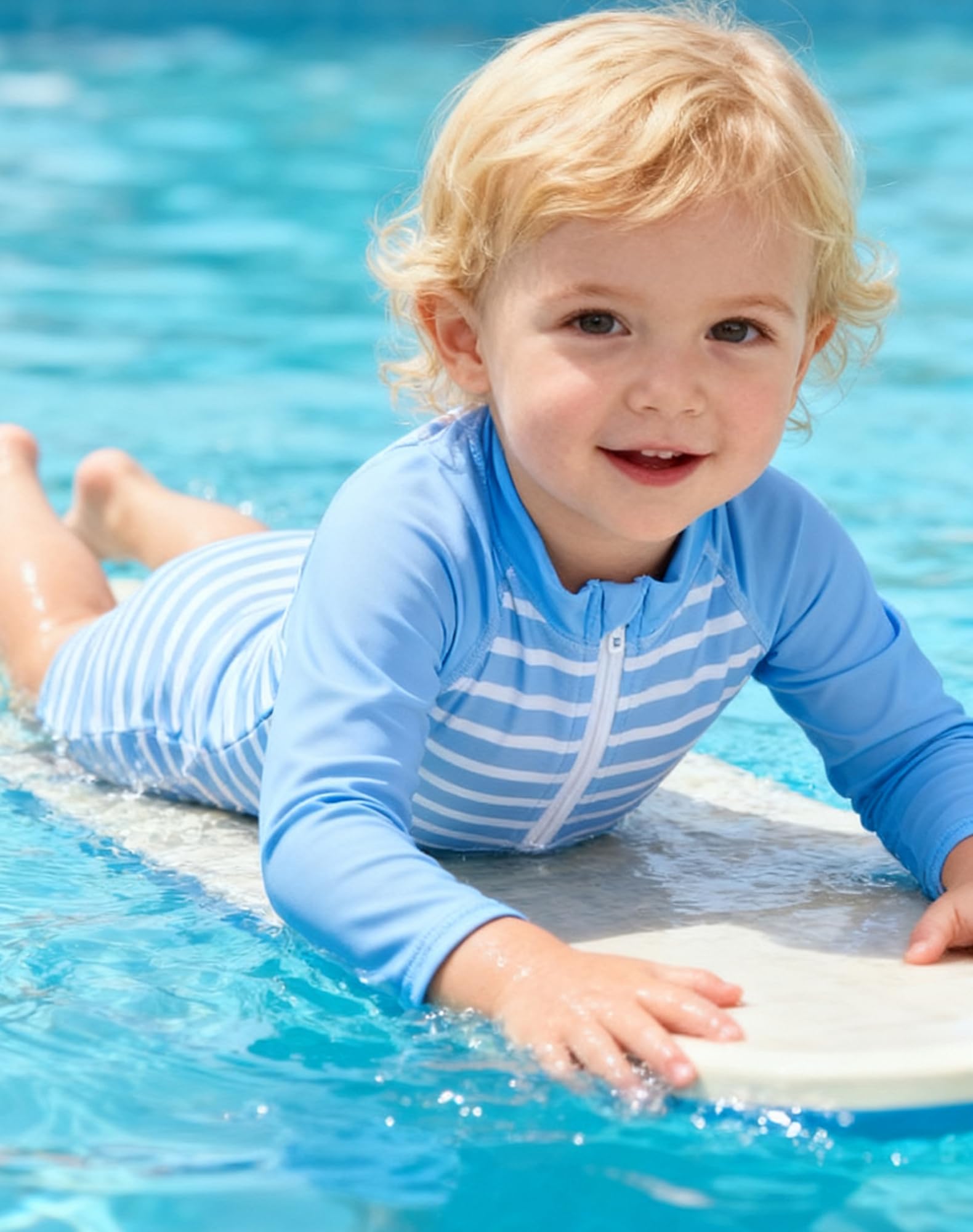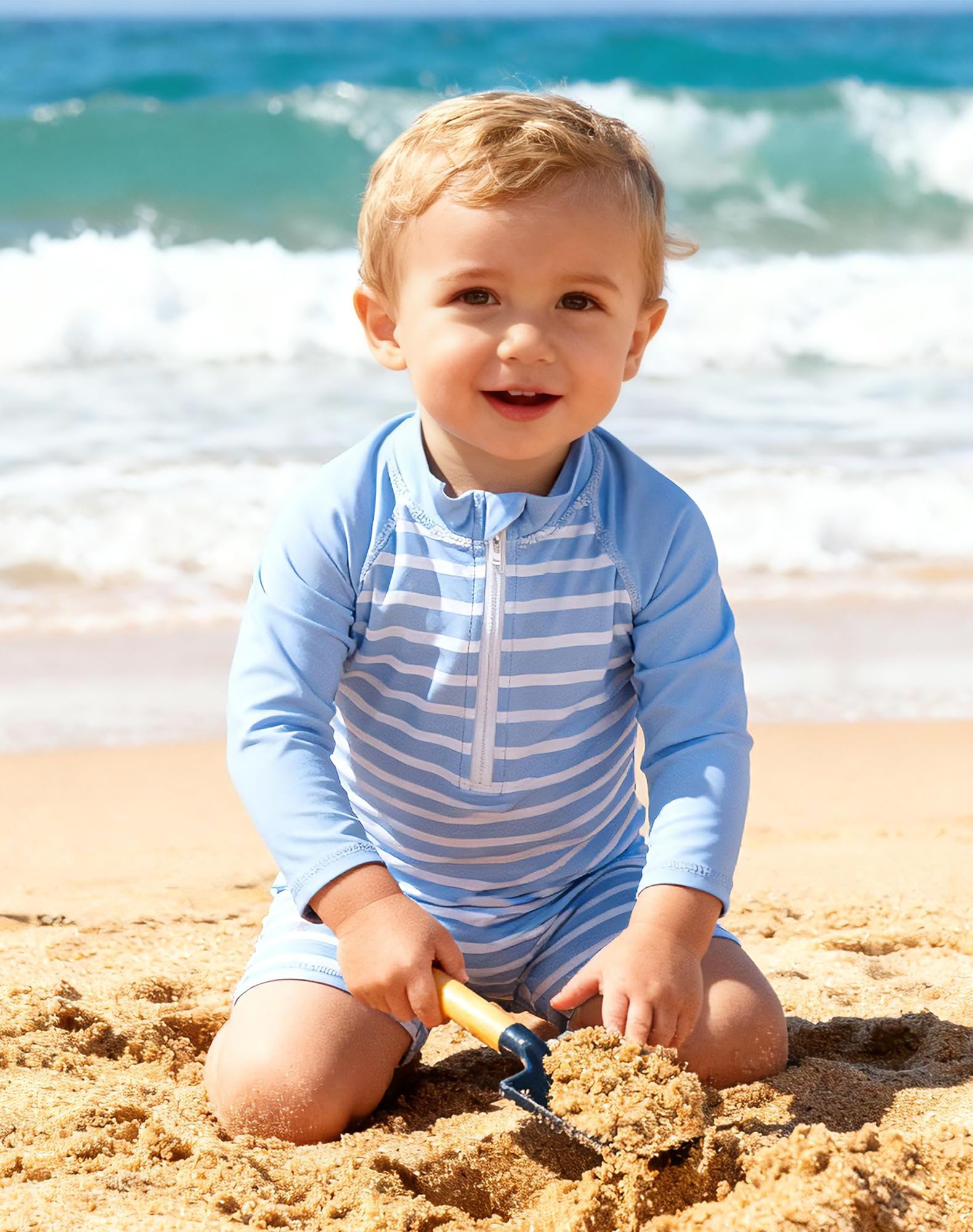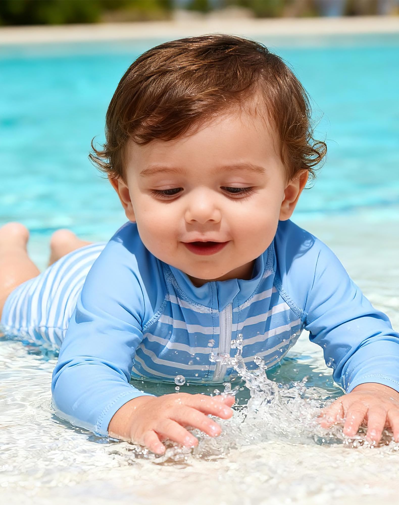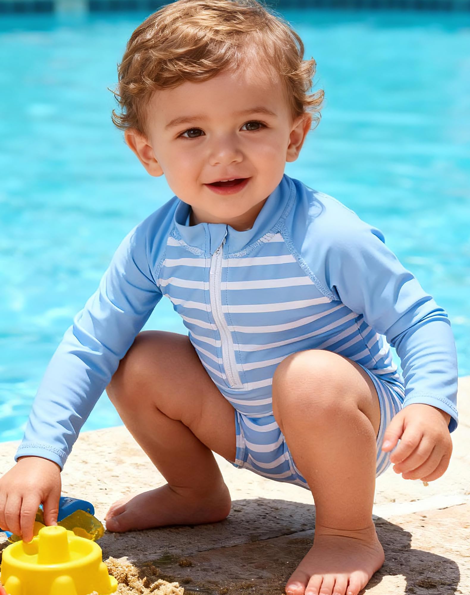 Long sleeve swimsuit with great protection from the sun.It's exactly what your baby needs for the summer.