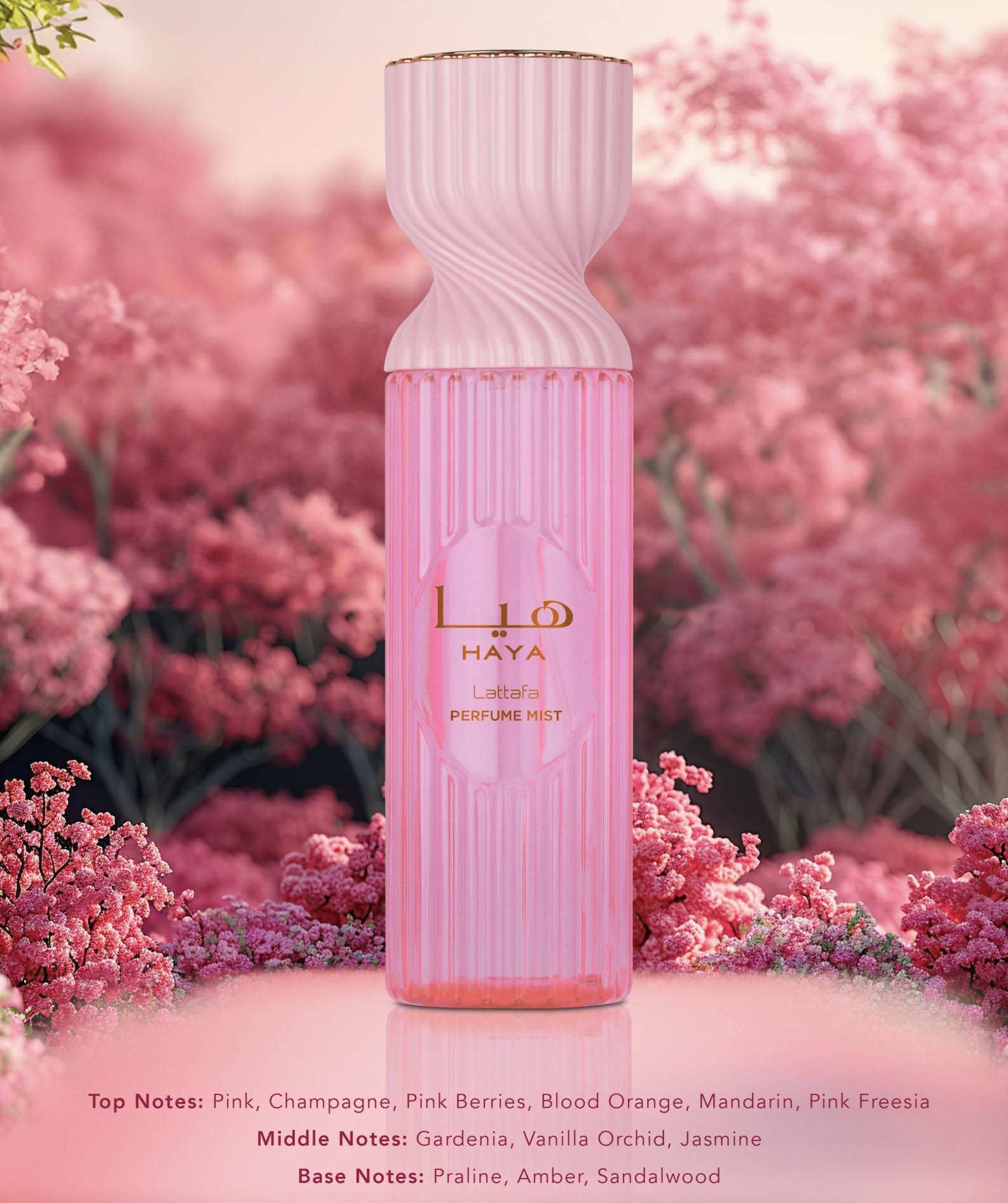 Lattafa Haya Perfume Mist 250ml – Body Spray with Pink Champagne, Pink Berries, Blood Orange, Gardenia, Vanilla Orchid, Praline, Amber & Sandalwood