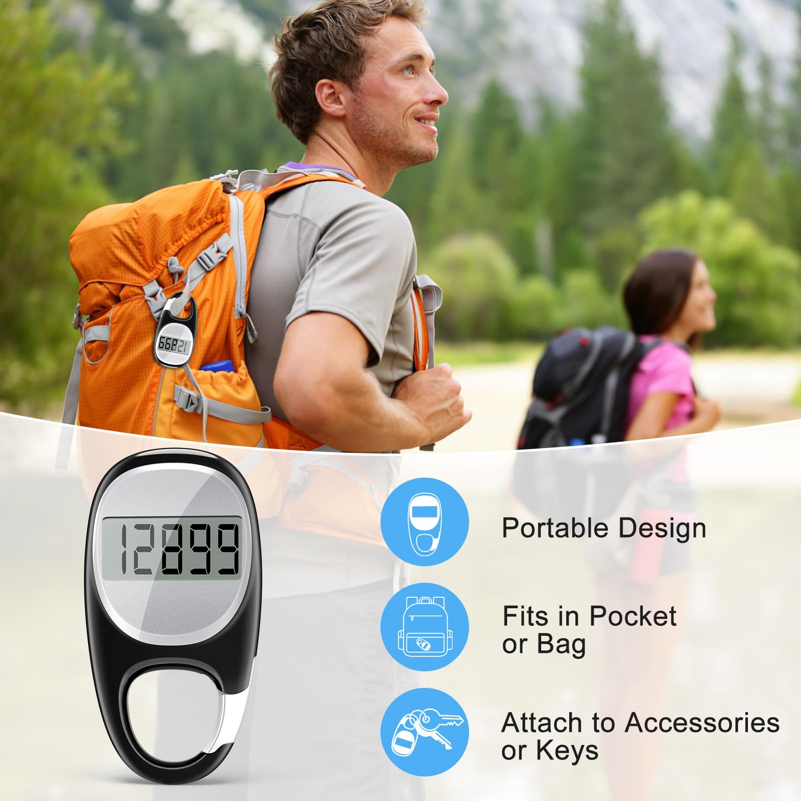 Innovative Carabiner Design: Featuring a creative carabiner design, this step counter easily hooks to your belt loop, pocket, or bag. No lanyard or clip needed, and its simplicity ensures easy usability