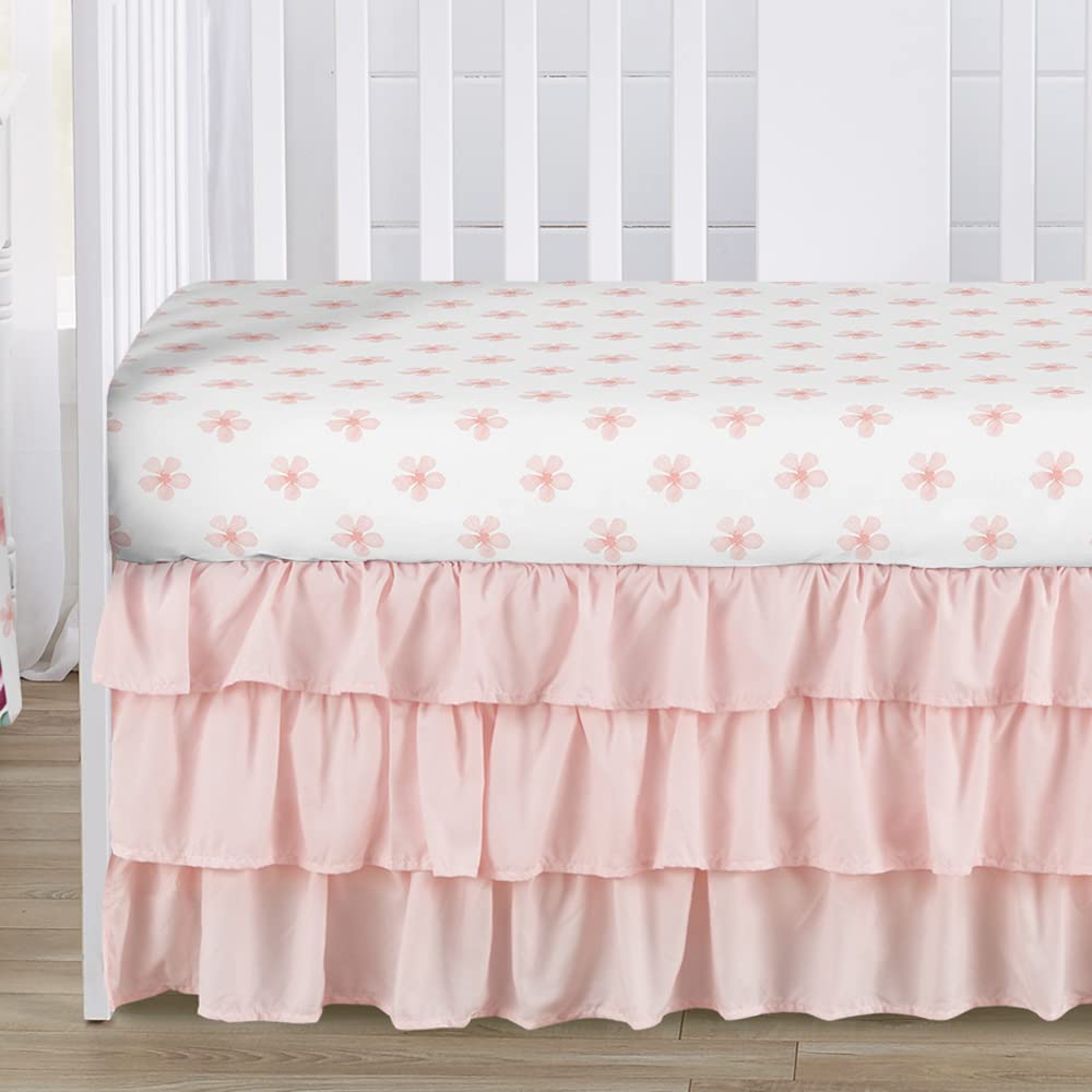 Dimensions: Crib Blanket: 45 in. x 36 in., Fitted Crib Sheet: 52 in. x 28 in. x 8 in. pocket, Crib Skirt: 52 in. x 28 in. x 15 in. Drop, Diaper stacker: 15 in. x 20 in. x 6 in.