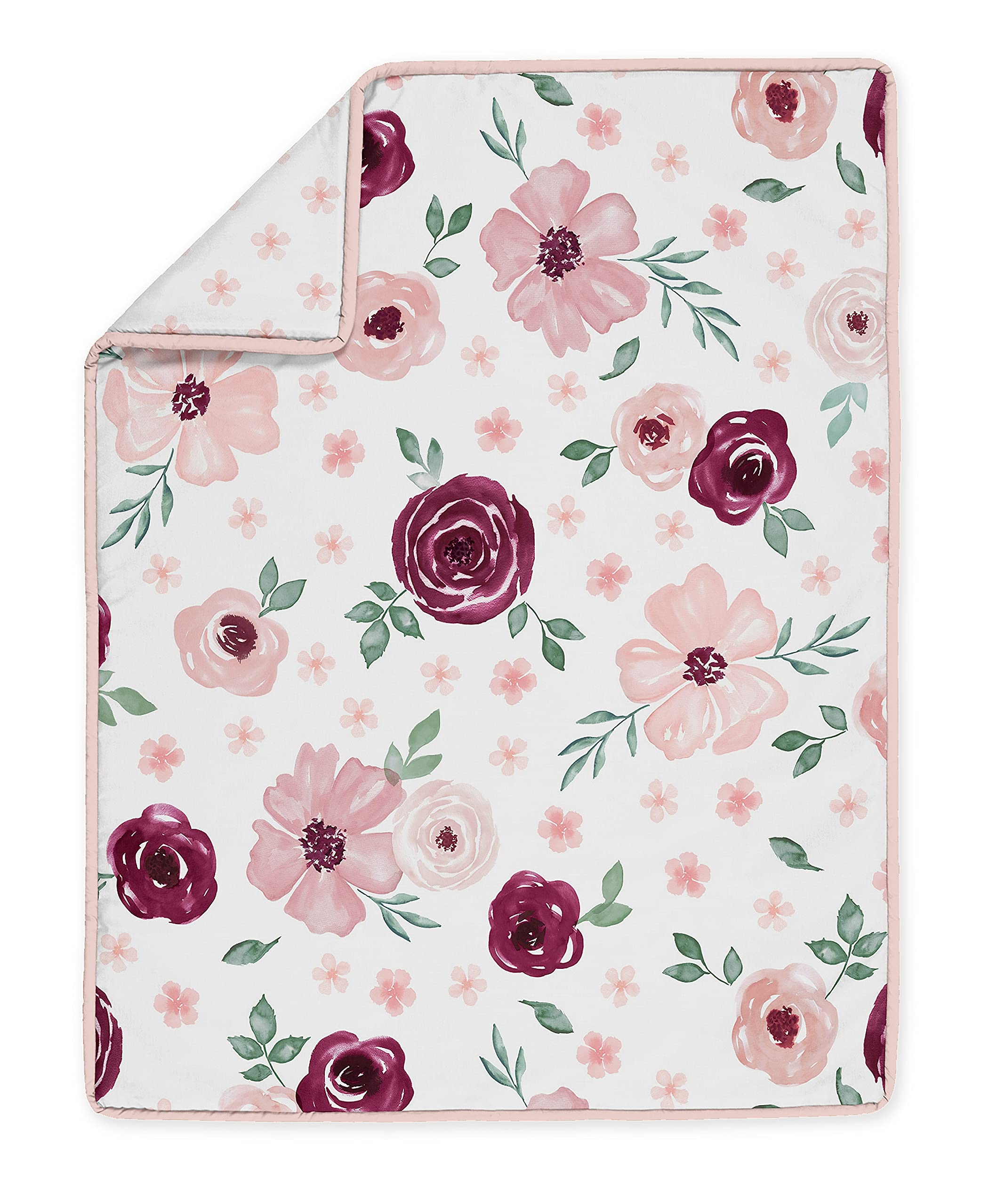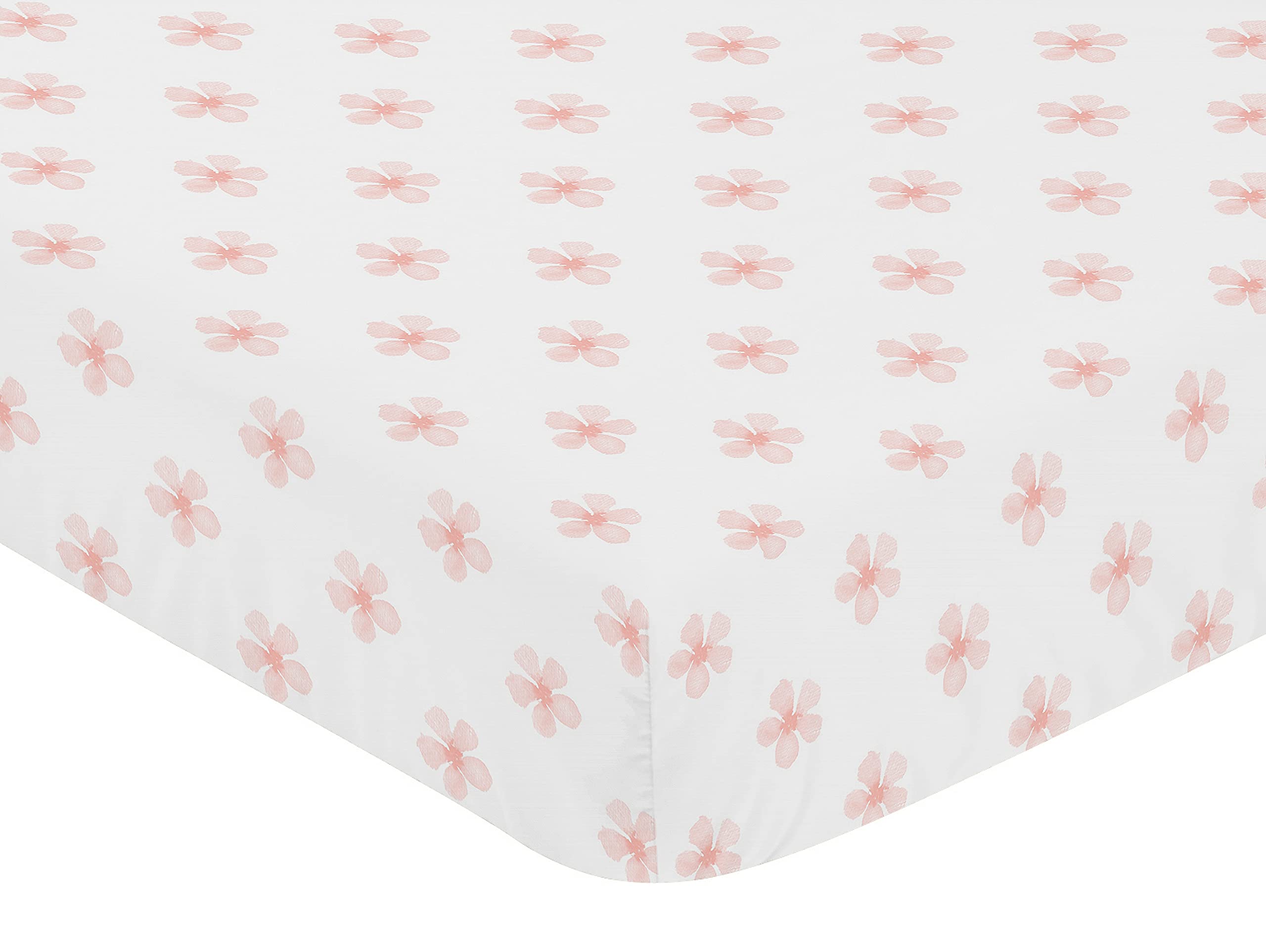 This set boasts a hand painted watercolor floral print, a pink daisy blossom flower print, and solid fabrics