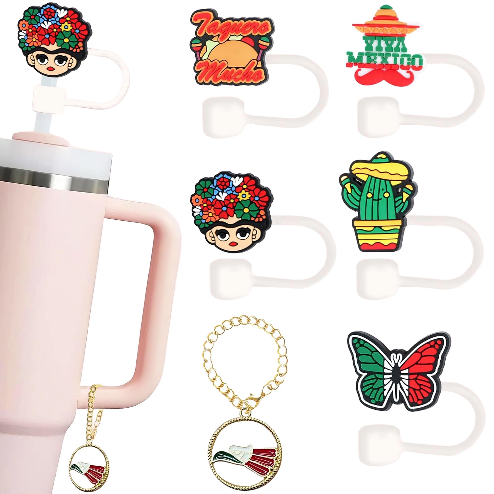 Cute Mexico Covers: 5pcs different styles of straw covers and 1pcs keychain, which are not only visually appealing, but also lightweight in design, which is enough to satisfy your needs of decorating the cups with your family and friends and adding glamour to the cups. Pretty mexican straw topper, mexican straw topper, mexican straw cover, mexican stanley straw cover