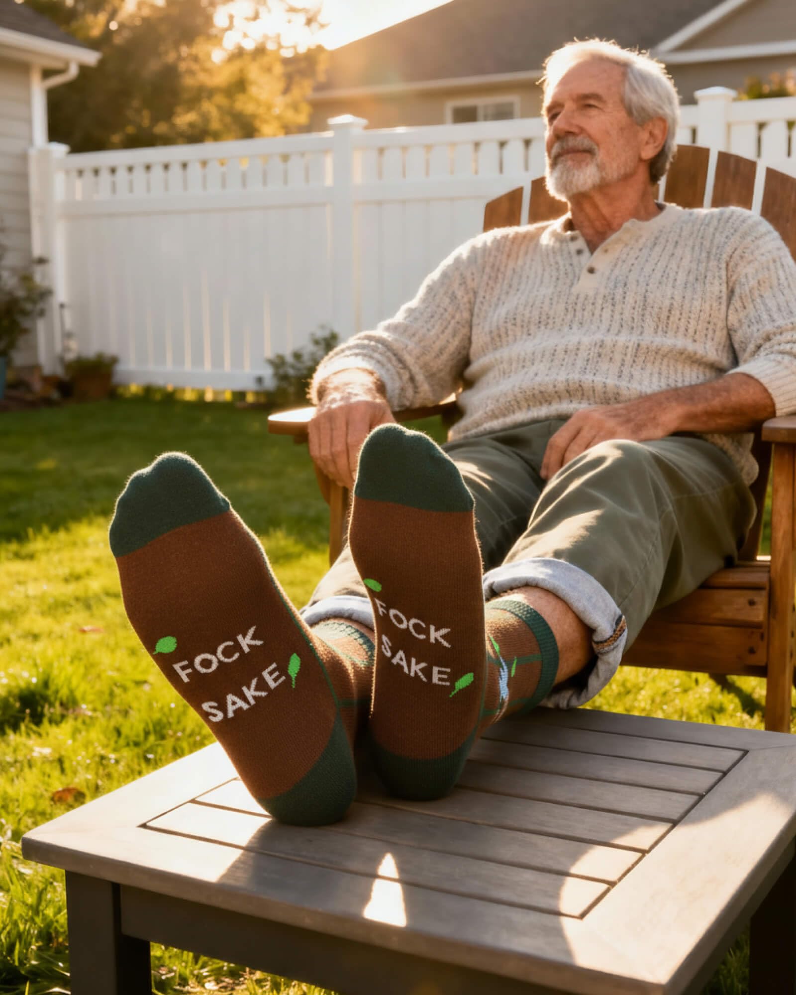 Spark Conversations & Connections:More than just socks, they are a conversation starter. The clever phrases like "I'M ROOTING FOR YOU" and "Fock Sake" are perfect icebreakers, helping him connect with fellow garden lovers who get the joke.