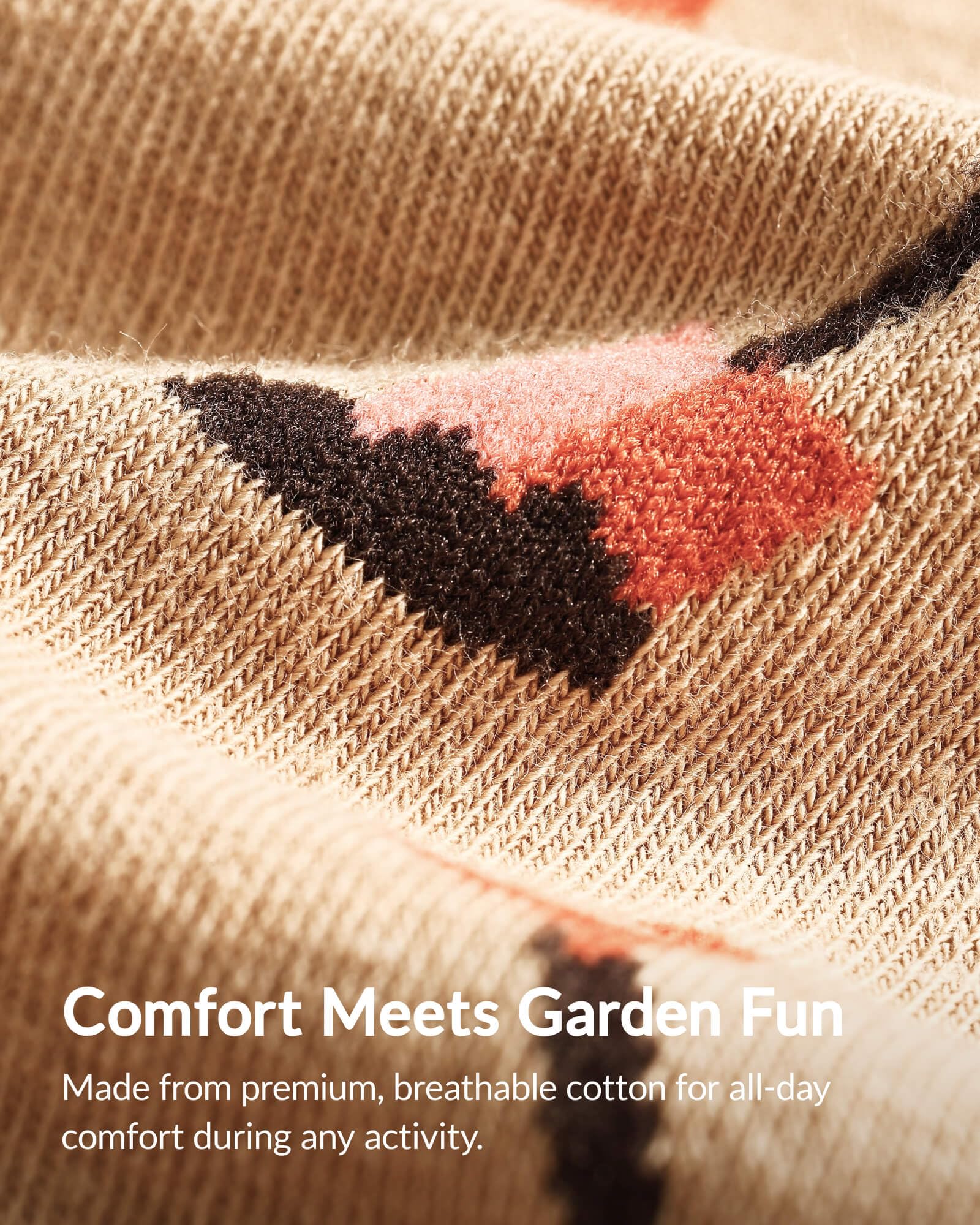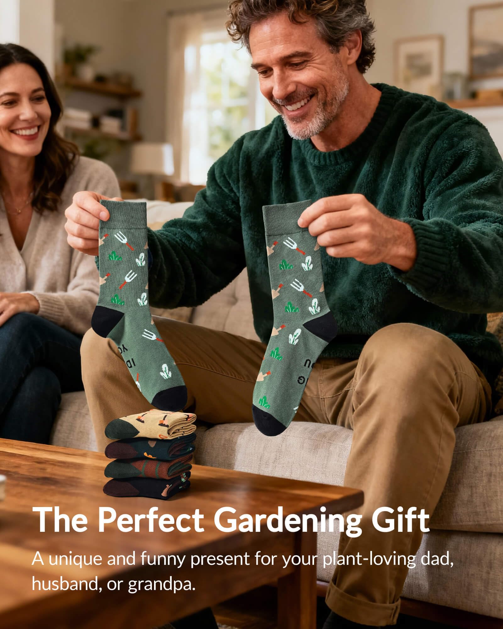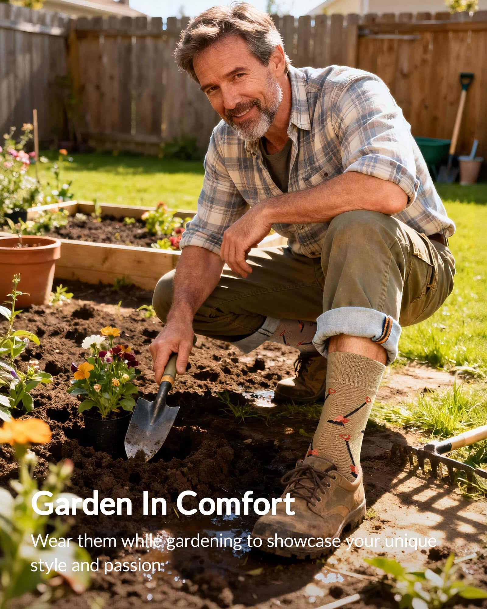Durable, Soft & Breathable Cotton:Crafted from high-quality cotton, these socks are built to last through many gardening seasons and countless washes. They provide all-day comfort, whether he's actually digging in the yard or just kicking back.
