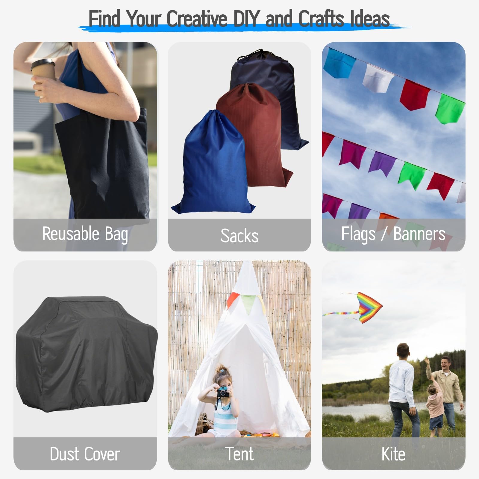 WIDELY USE - With above-mentioned advantages, this fabric is suitable for kinds of crafting and DIY projects, such as covers (protective cover, dust cover, bike cover, boat cover, furniture cover), flags, banners, stuff sacks, reusable bags, tent, tarps, kites and more.