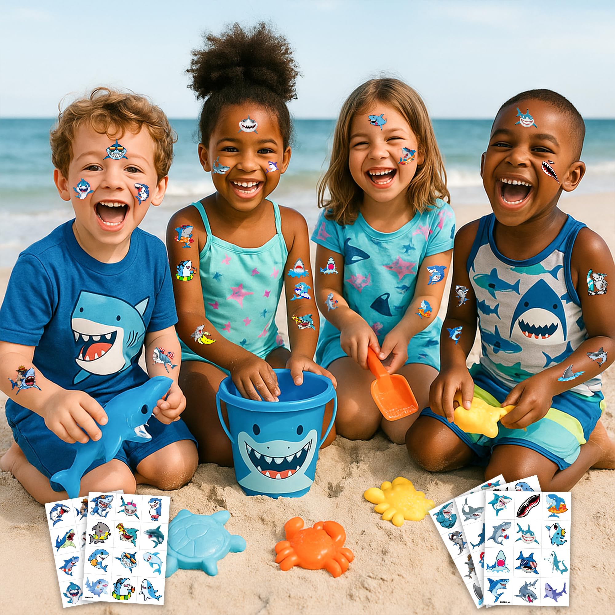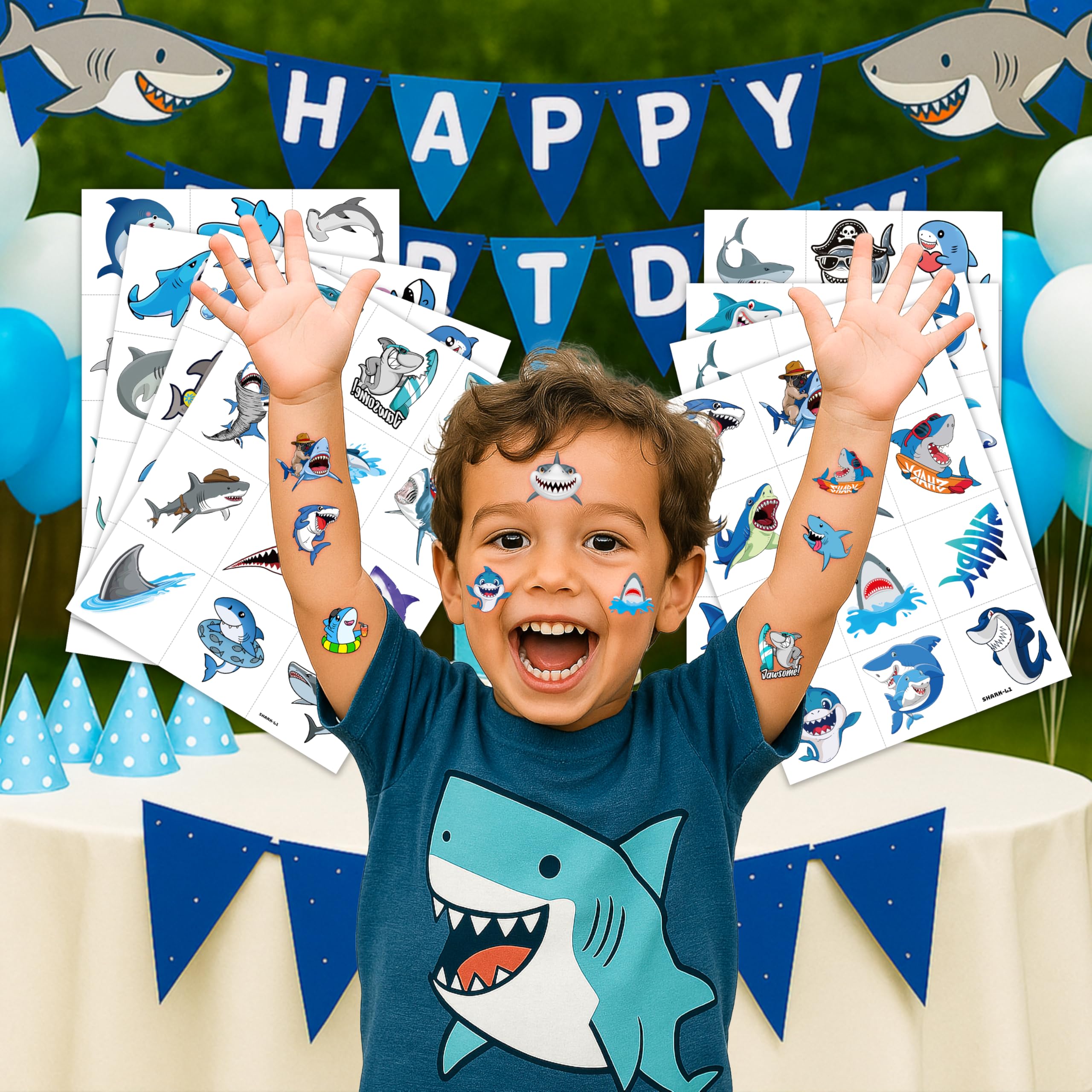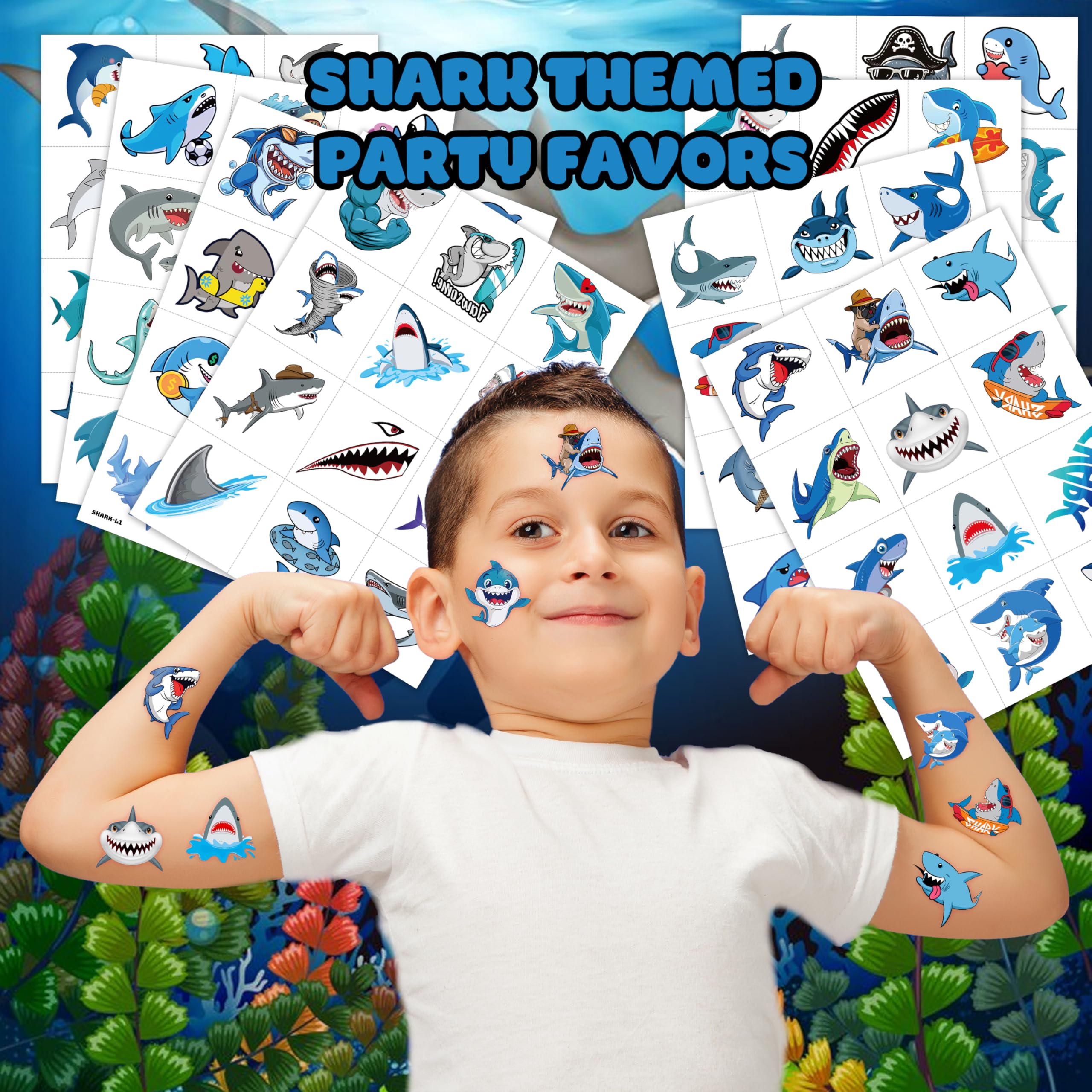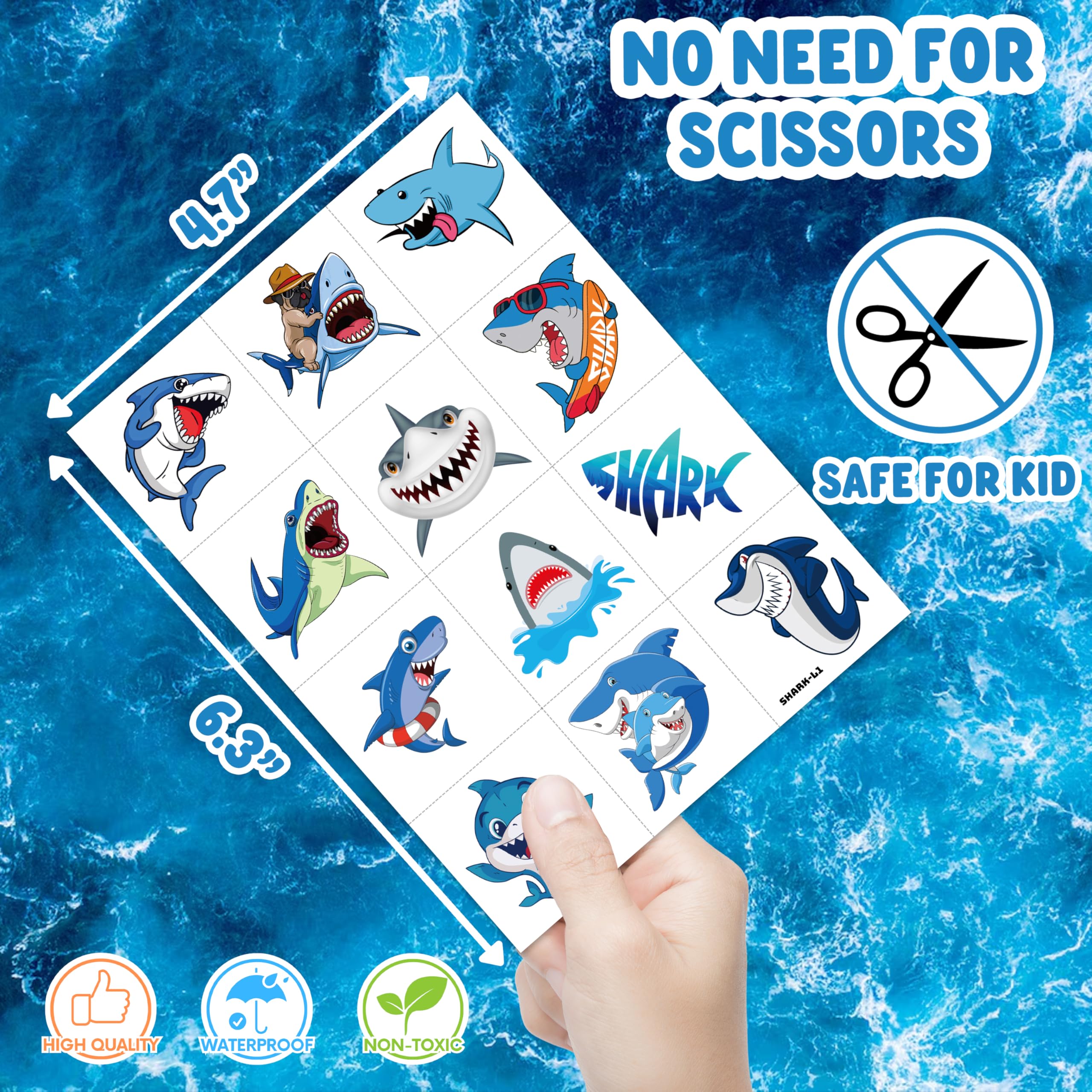 🦈 FUN GIFT IDEAS FOR SHARK BIRTHDAY PARTY FAVORS DECORATIONS SUPPLIES: SHARK PRE-CUT TATTOOS perfect for themed party, outdoor parties, birthday parties, school rewards and other party events. In addition, they help children recognize Sea Animal. SHARK PRE-CUT TATTOOS are also interesting and lovely gifts for your children. Complement your unique collection with a shark tattoo!