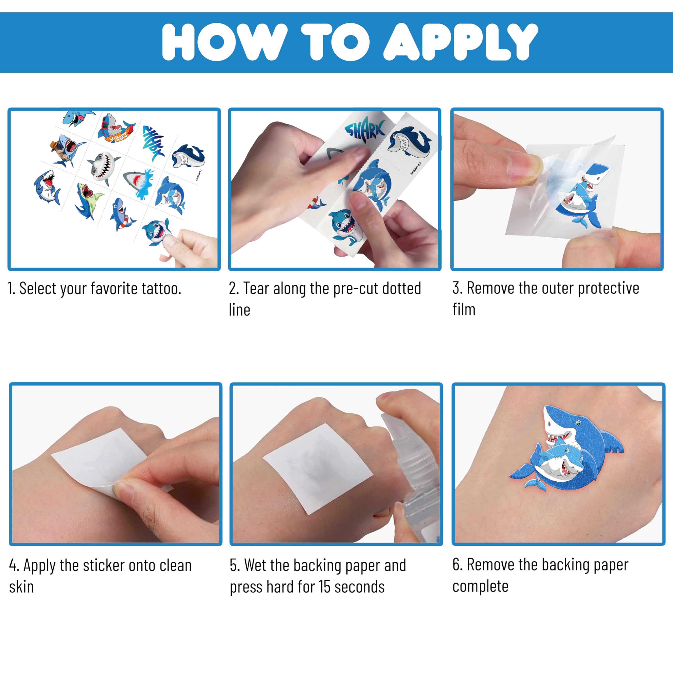 🦈 EASY TO USE AND REMOVE : You can place them on your hands, arms, face, or any comfortable area. Simply cut out each tattoo from the sheets and remove the clear protective layer. Wet the tattoo thoroughly with water, wait for 20-30 seconds, and then remove the backing paper. The result will be a velvety, long-lasting tattoo.