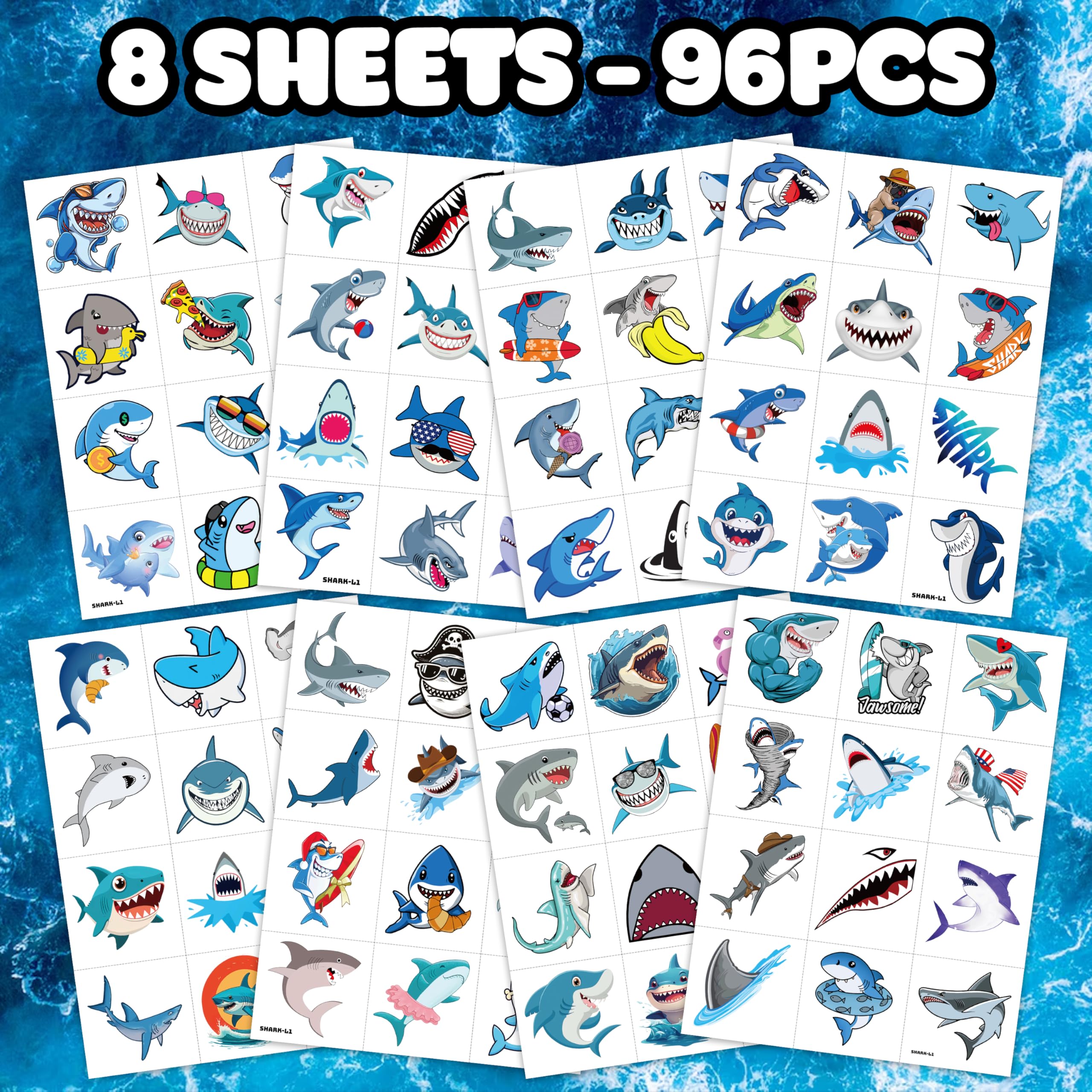 🦈 PERFECT TATTOOS FOR SHARK THEMED DECORATION: SHARK PRE-CUT TATTOOS for people who love Shark, Sea Animal. Featuring 8 sheets with 96 pcs of lovely, fun and colorful design. Each sheet measures 6.3 * 4.7 inches. You can temporarily tattoo them on your body or objects such as phones, bottles, laptop…