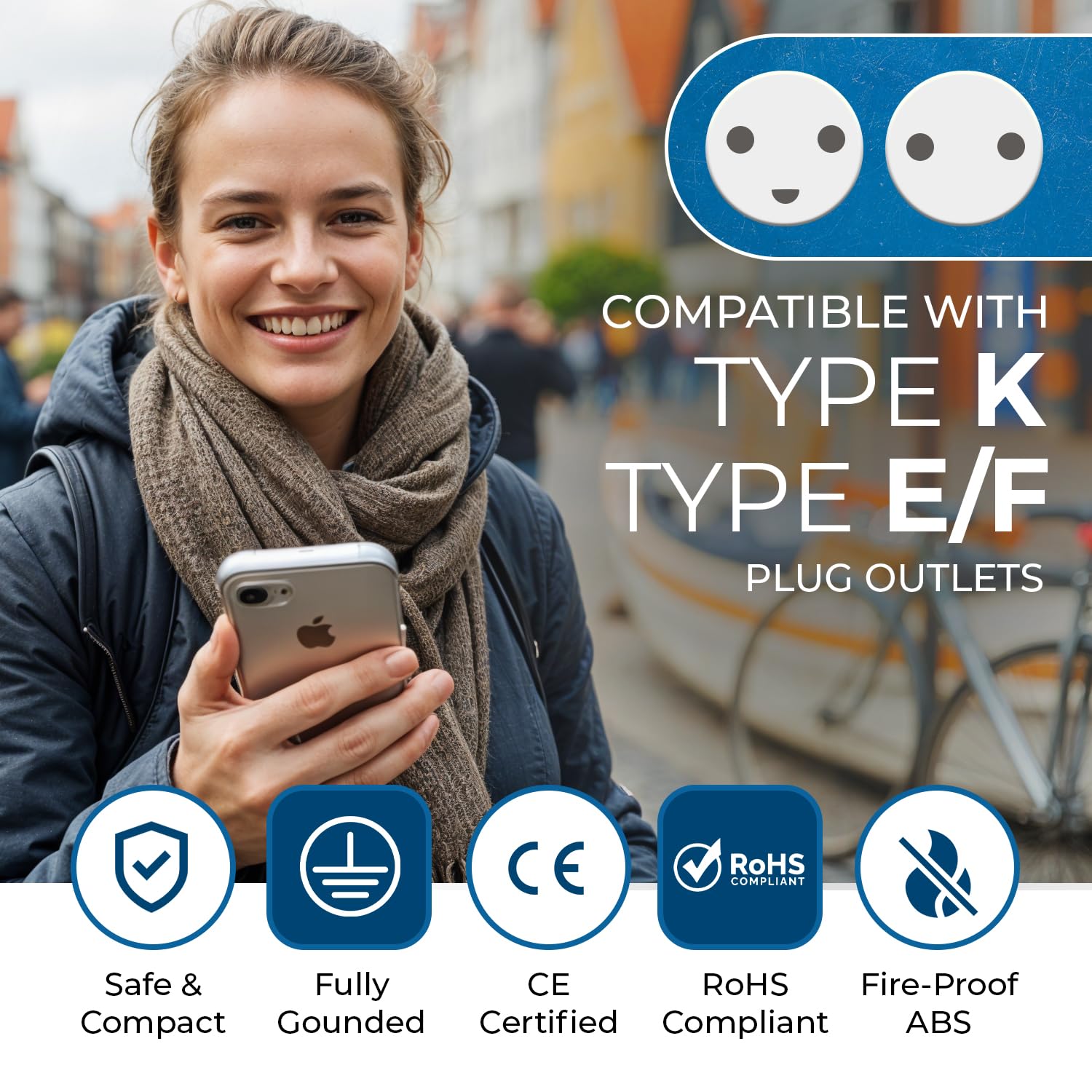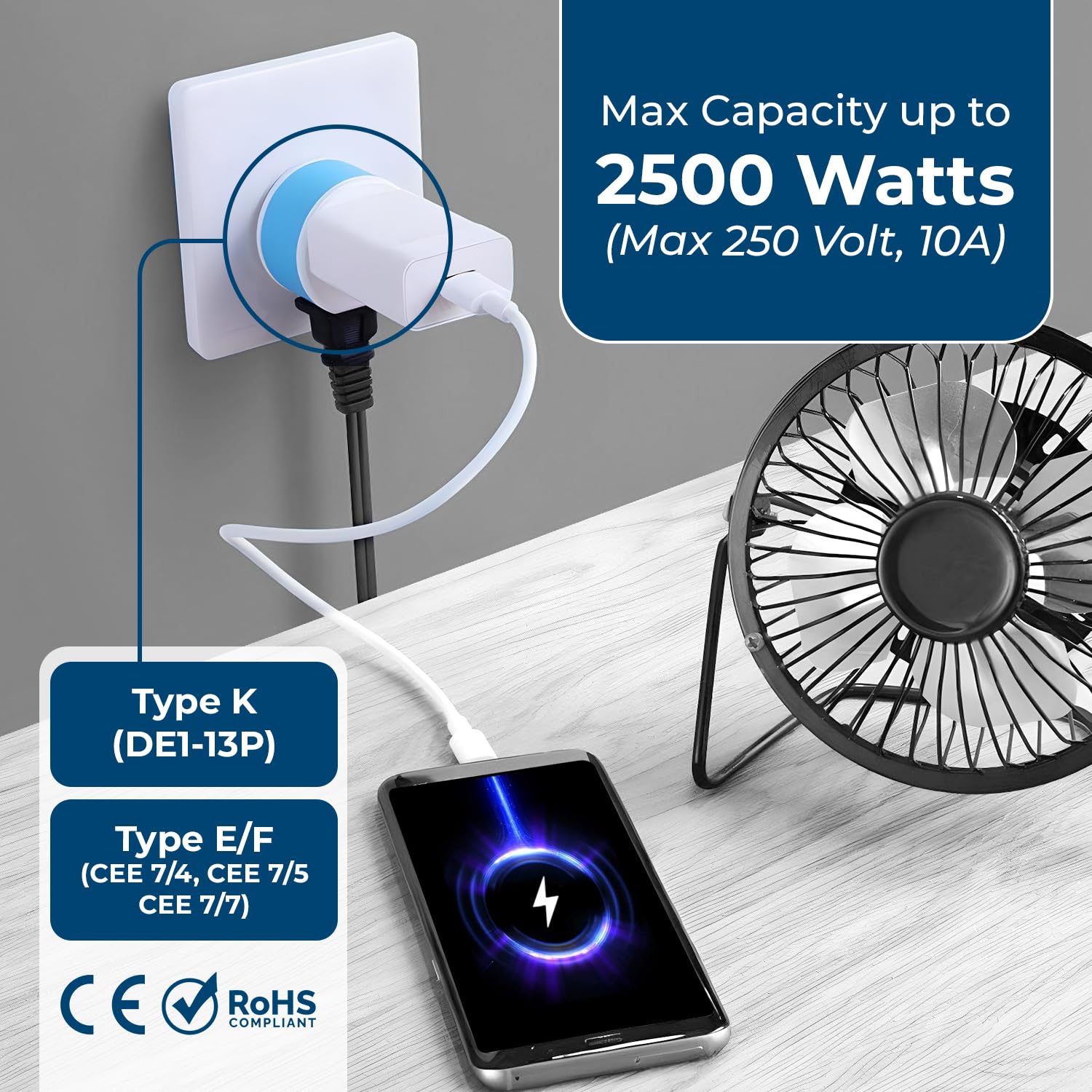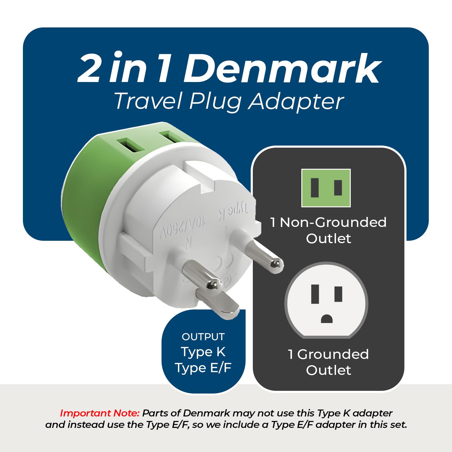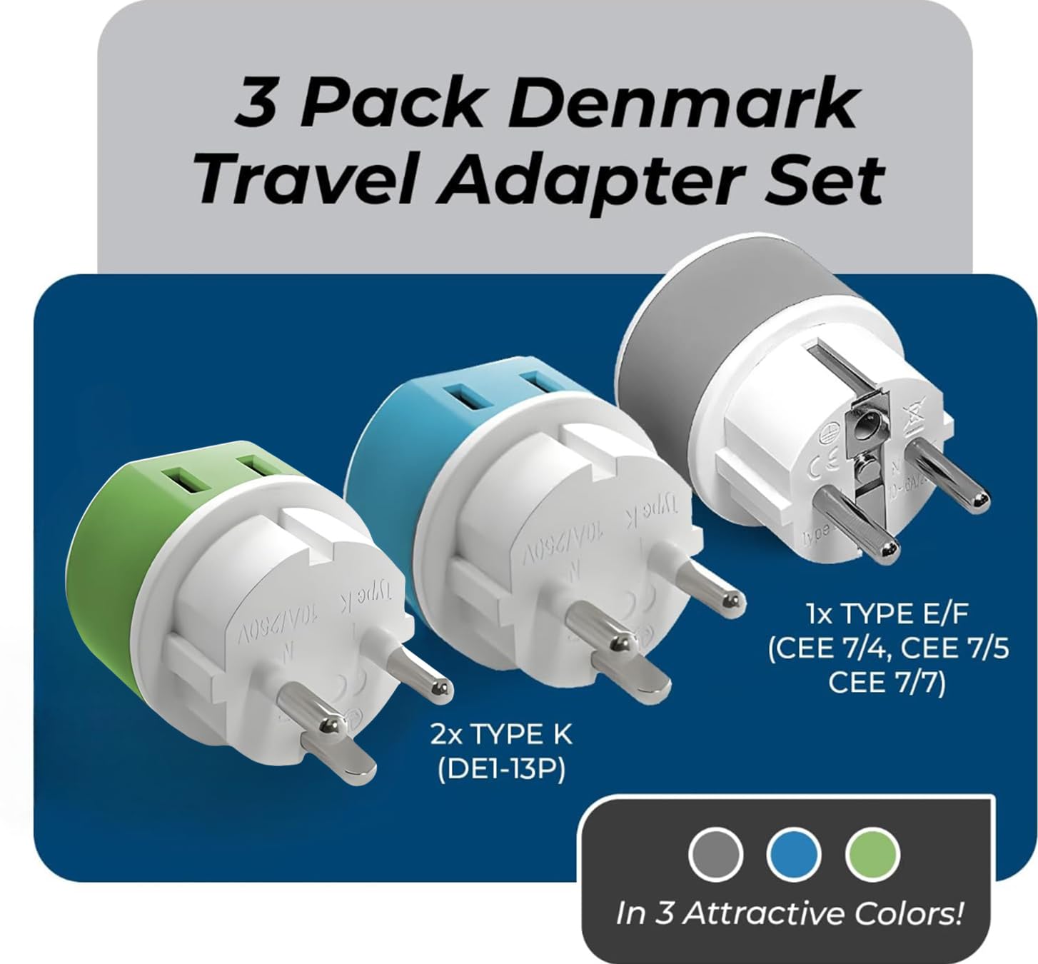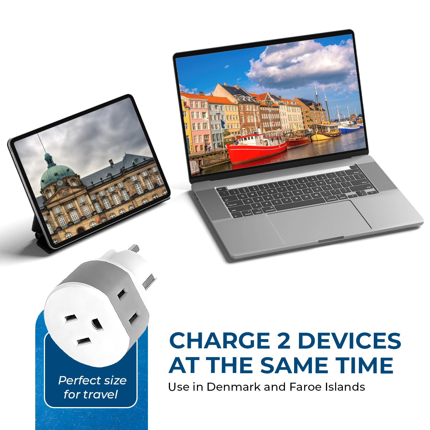 One Outlet adapter Type K Plug & Two Outlet adapter Type E/F - works in countries such as Denmark